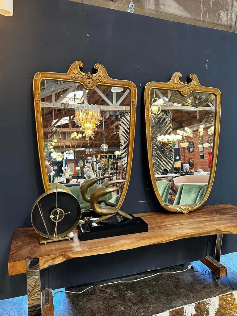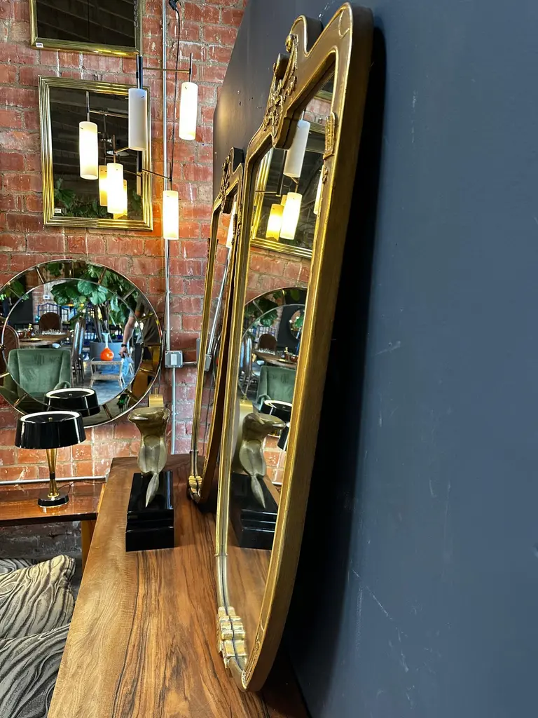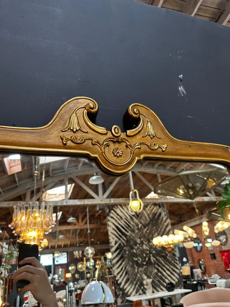 Beautiful Oversize Italian Venetian mirror with a gold wood frame with original patina.Available 2.