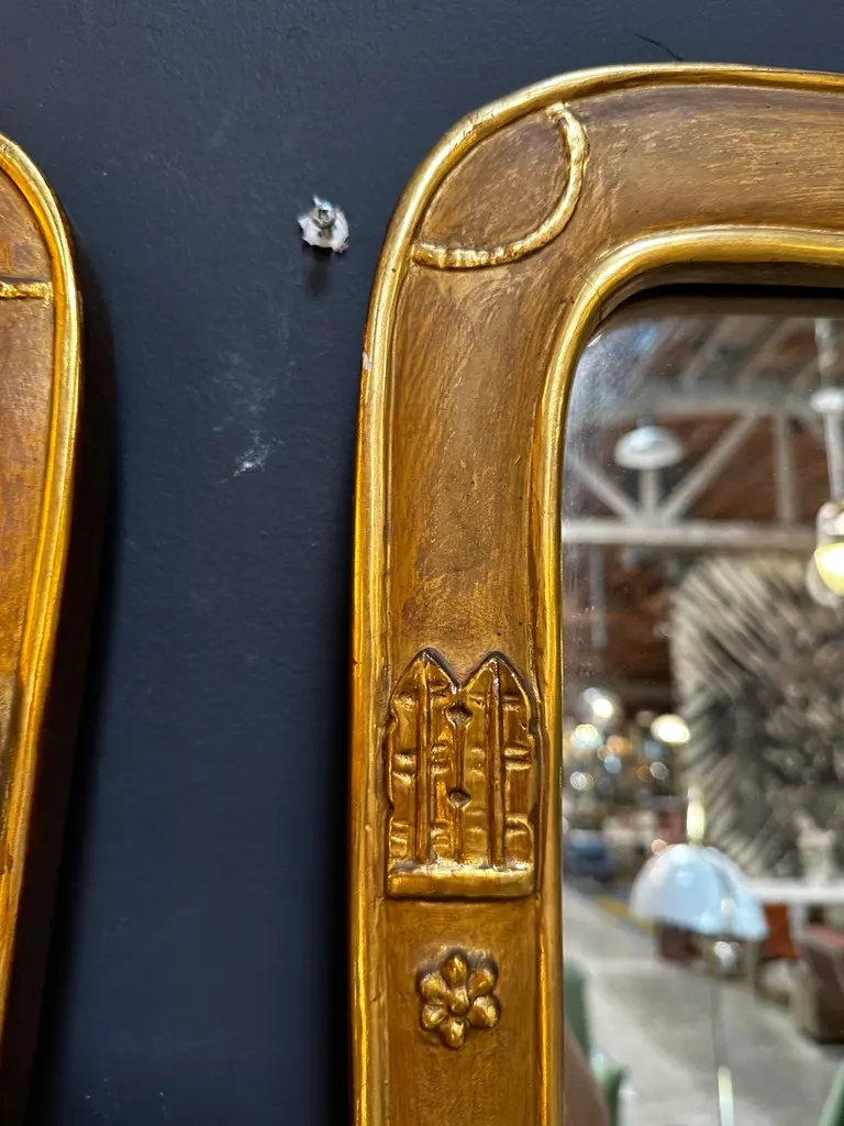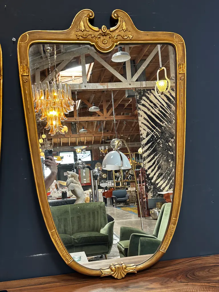 Beautiful Oversize Italian Venetian mirror with a gold wood frame with original patina. AVAILABLE 2