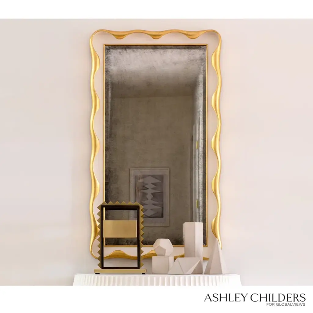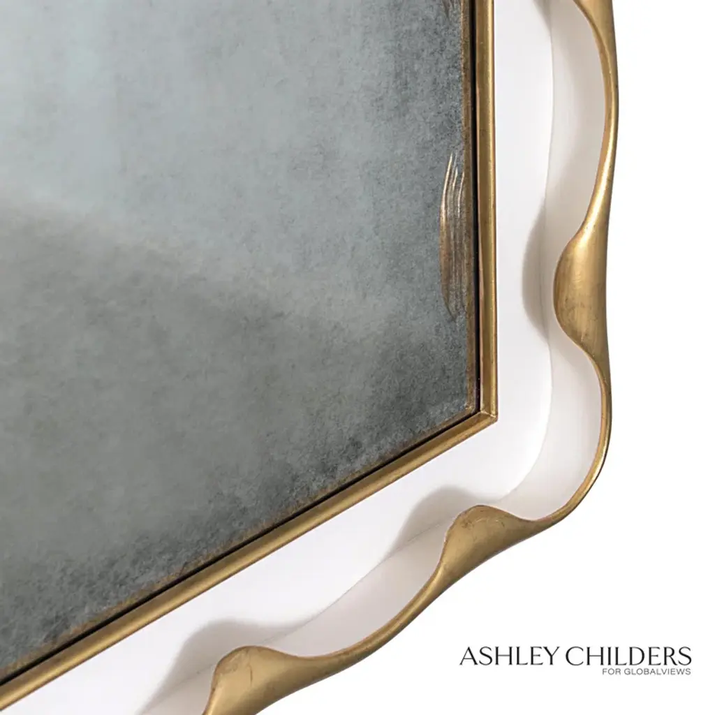 Ashley designed the Venus mirror to be a true modern heirloom. Feminine curves and fanciful scallops are highlighted in gilded. A lightly hand antiqued mirror finishes the overall look and makes this design a swoon-worthy addition to any space. |Wood, MDF, Mirror