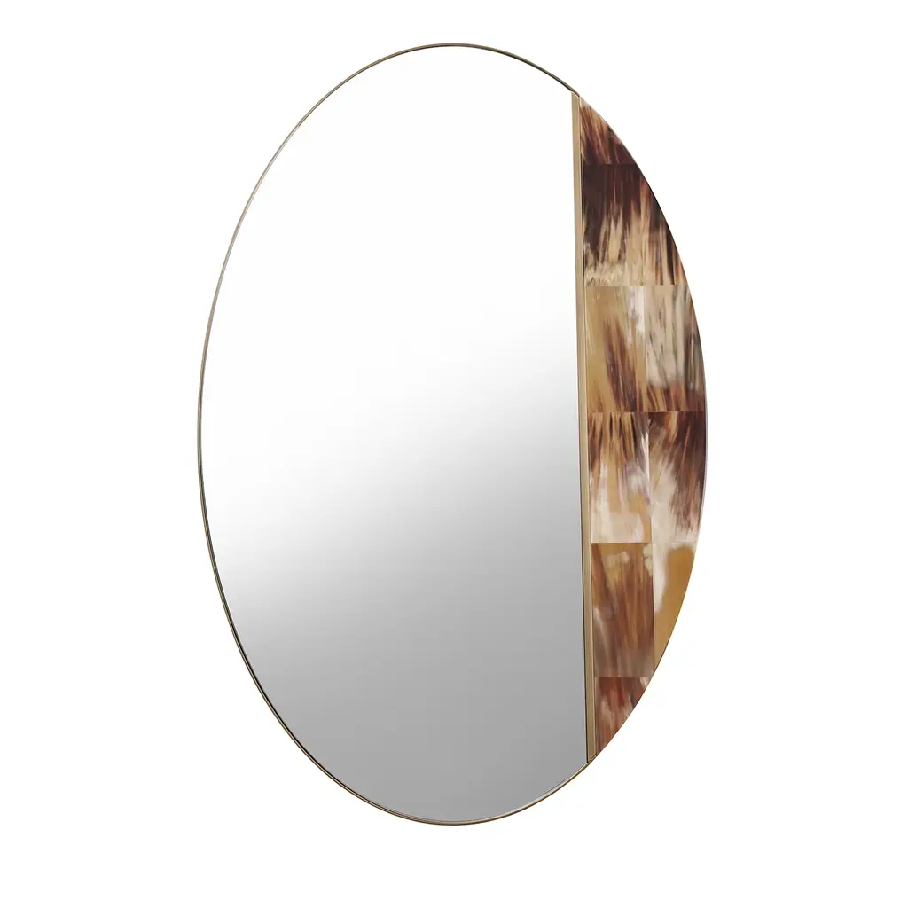 Vesuvius 90 Wall Mirror by Atlas ProjectDimensions: D 3/5 x Ø 90 cm. Materials: Black powder painted iron, mirror, lava stone, glass fusion handpainted, copper, and wood.Available in different sizes. Please contact us.VESUVIUSVesuvius is the tribute of Atlasproject to the most powerful and romantic presence of nature in the landscape of Naples. The Vesuvius Mirror recalls the amazing force of nature through the combination of the materials selected: lavic stone, fused glass, and copper. The geometries of the design retrace the relentless descent of incandescent lava, while the mirror suggests to the spectator that witnessing the becoming of nature and remaining stunned is the only option offered to the spectator.Our ProjectThe synergy between a thirty-year Italian craft experience and an original design, based on the need to research and develop topics up with the new aesthetic trends, gives birth to Atlasproject, an exclusive furniture collection conceived by the designer Massimiliano Giordano.Born and developed first in Copenhagen, then in Vienna and finally in Rome, the project is – as a matter of fact - a journey of contamination and encounter between the many cultures of the European Design.The production is focused on a dynamic dialogue between geometries and materials, which leads to collections of deep impact and elegance. Every piece merges essential geometric shapes with the most surprising materials, textures, and colors, as the result of a careful selection of natural materials and hand-processed metals.The Atlasproject collections are entirely made in Italy, where the tradition of artisanality is still a deep value, to ensure high-quality and long-life products.Of Neapolitan origins, Massimiliano Giordano grew up inthe family’s artistic atelier.The artisan knowledge and the design skills lead him to Atlasproject, a creative container inspired by the journey, leit motiv of his personal and professional life. In fact, the designer leaves from Naples towards Copenhagen, where he will stay for five years, and then for Vienna for five years more in the heart of the Mitteleuropean design, and finally in Rome, where he currently lives and works.The amazing connections between the encountered design souls actually represent the most significant stylistic figure of his works.