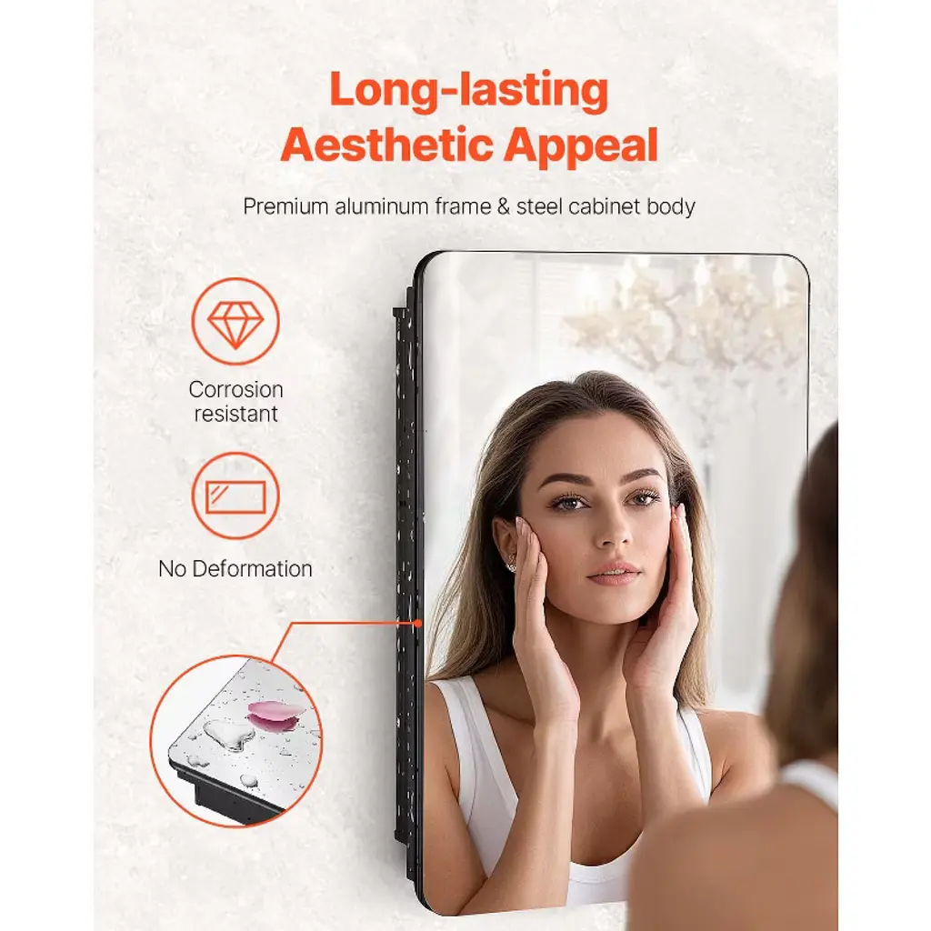 Vevor Medicine Cabinet, 16.5 X 27.5 Inch, Medicine Cabinet For Bathroom With Mirror, Aluminum Frame, 3-layer Adjustable Shelves, Black