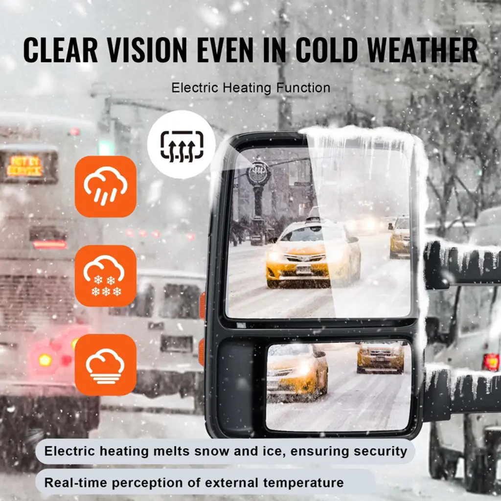 Vevor Towing Mirrors, Left & Right Pair Set For 1999-2007 Ford F250 F350 F450 F550, Power Heated With Signal Light, Plane & Convex Glass, Black