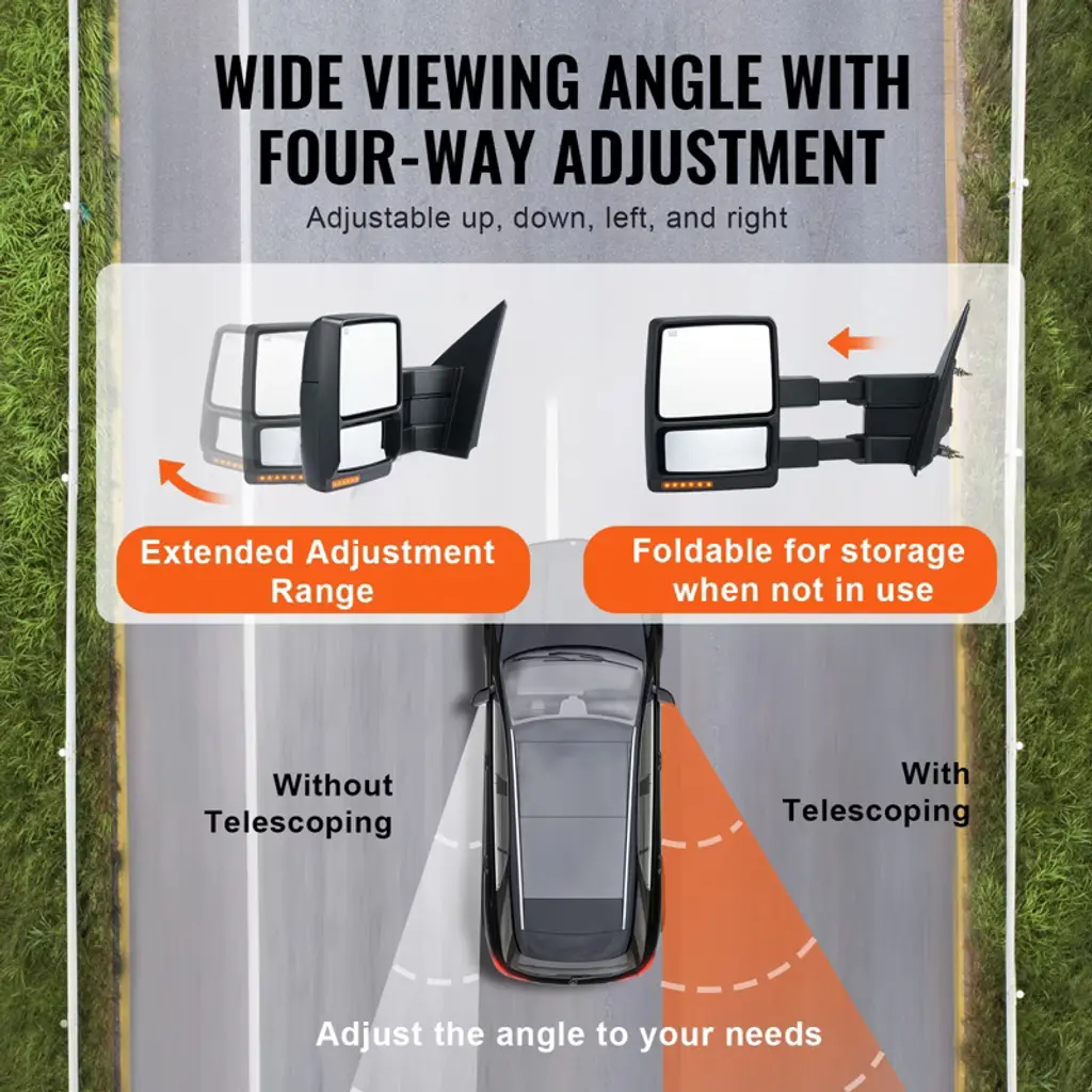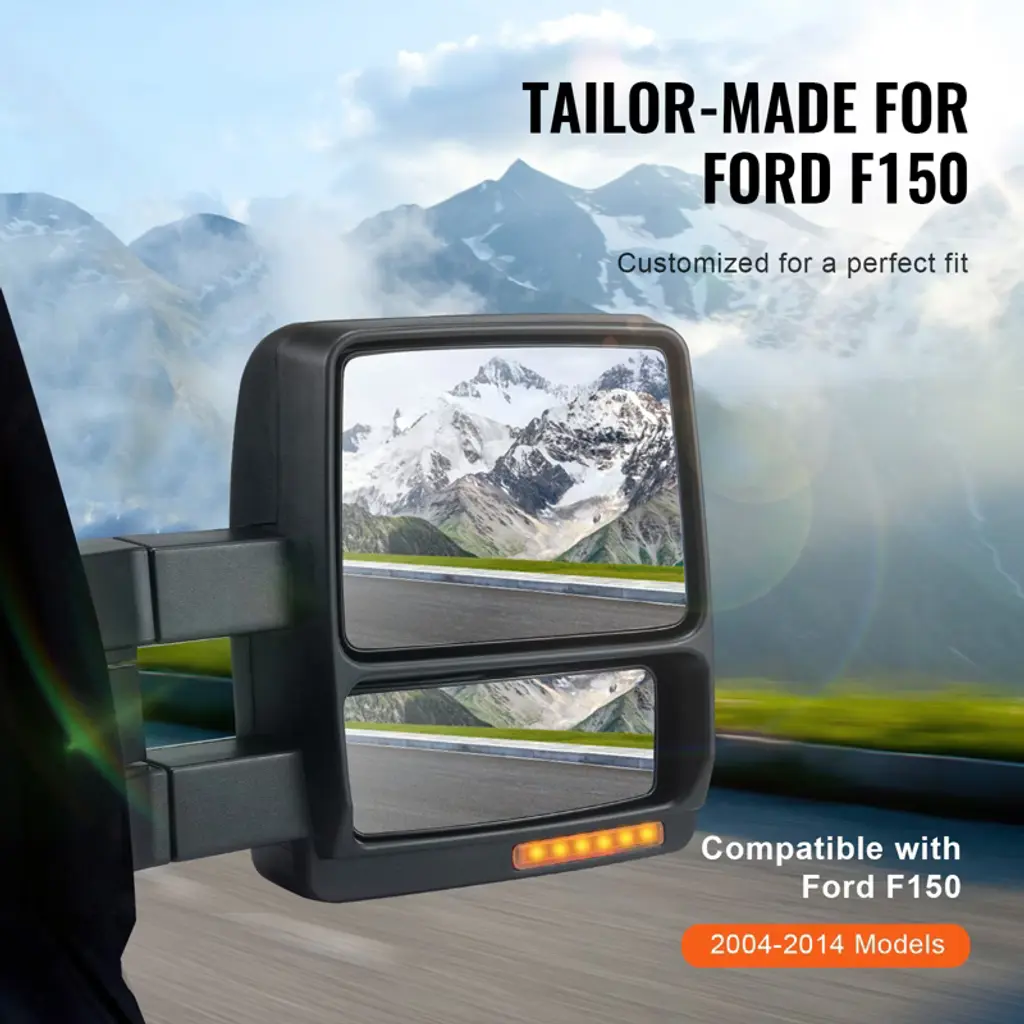 Vevor Towing Mirrors, Left & Right Pair Set For 2004-2014 Ford F150, Power Heated With Signal Light & Puddle Light, Plane & Convex Glass
