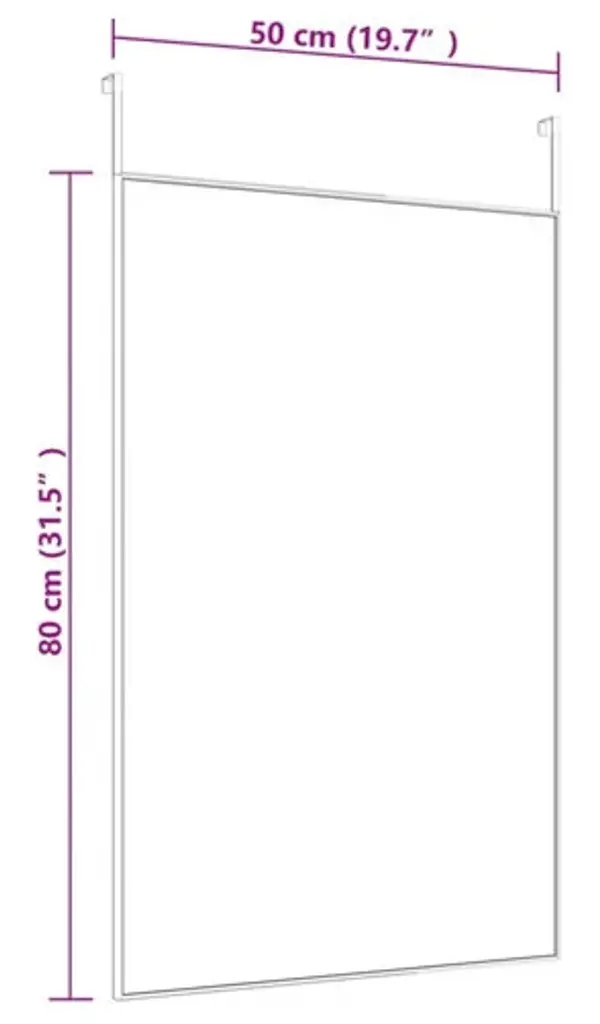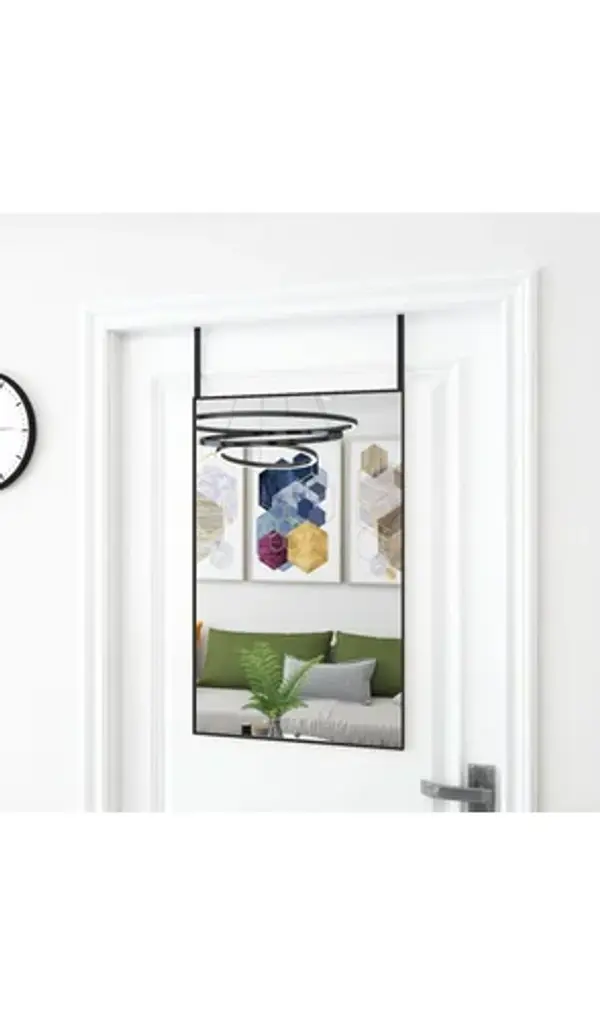 Add a touch of minimalistic aesthetic to your home decor with this practical door mirror! It's suitable for bedroom, living room, corridor, anywhere a mirror might be needed.Stable and sturdy frame: The aluminum frames ensure sturdiness and stability.Adjustable height: The included over-the-door hooks allow different heights from the top of the door to ensure you can get the perfect view of yourself.Space-saving function: By placing it over the door or on the wall, the dressing mirror with its simple and precise design can help save space.Easy installation: No assembly required. With included two hooks, you can hang the classic wall mirror over your door with ease.Color: BlackMaterial: Aluminum, glass, metalSize: 19.7" x 31.5" (W x H)Frame thickness: 0.6"Glass thickness: 0.12"Assembly required: NoDelivery contains:1 x Door mirror2 x Hook
