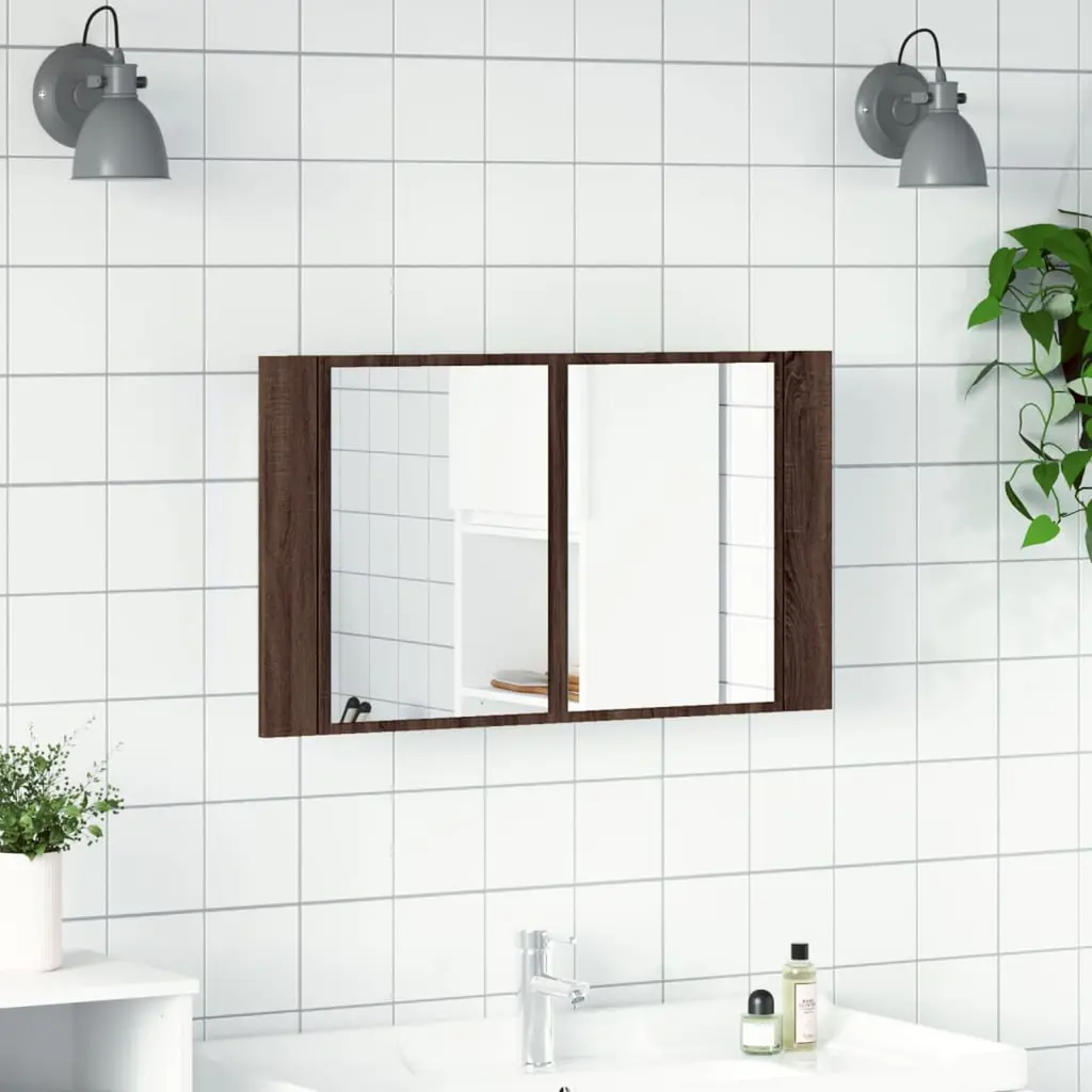 Vidaxl Led Mirror Cabinet Brown Oak Engineered Wood Medium