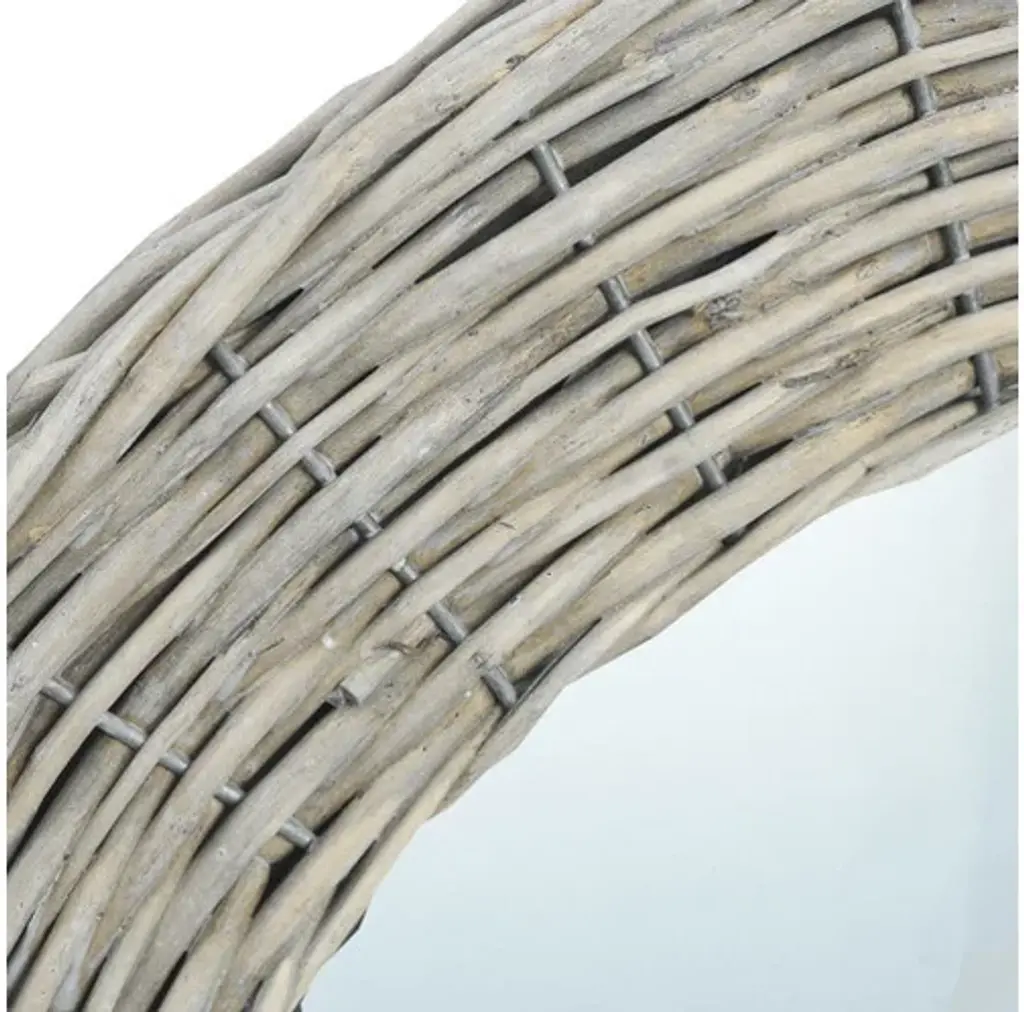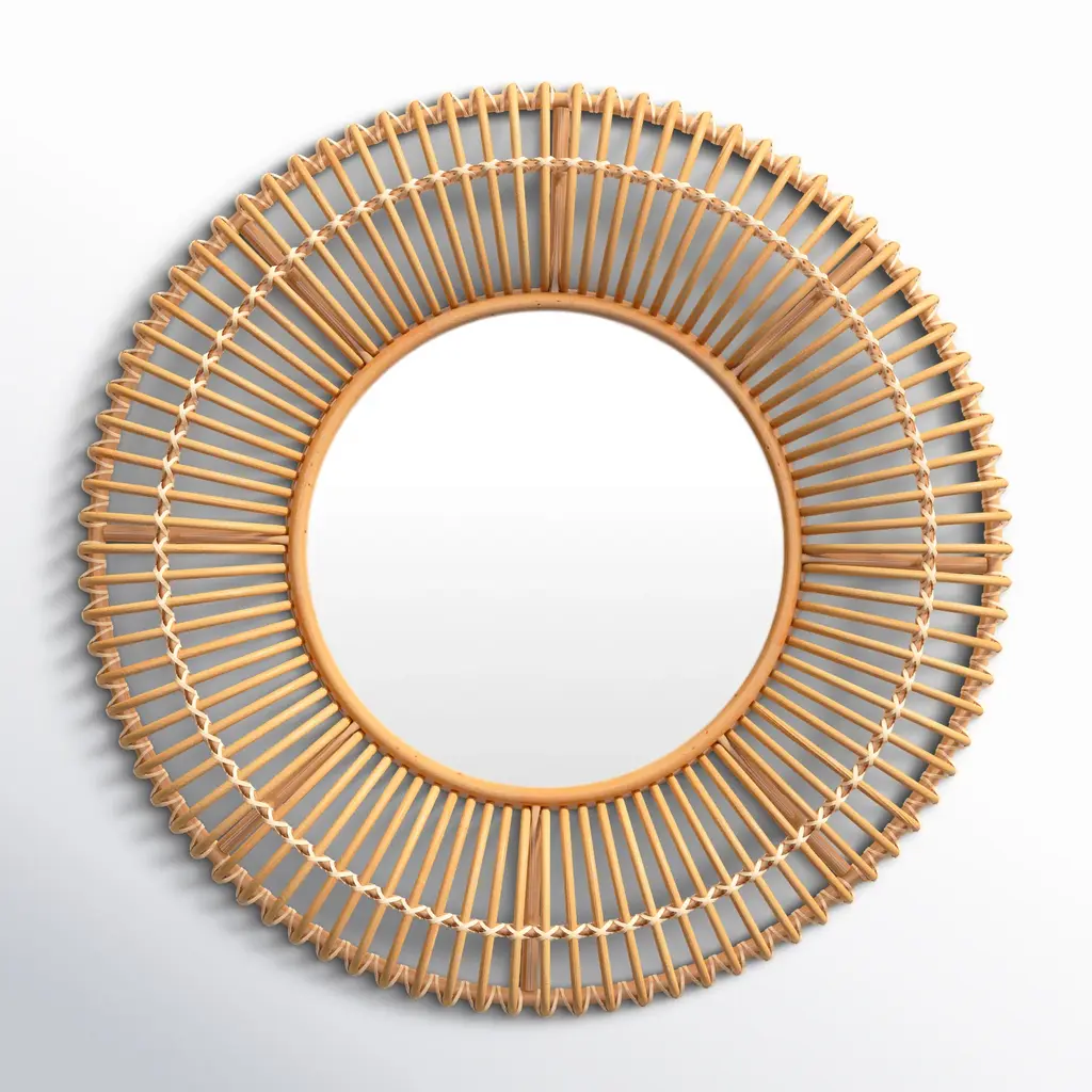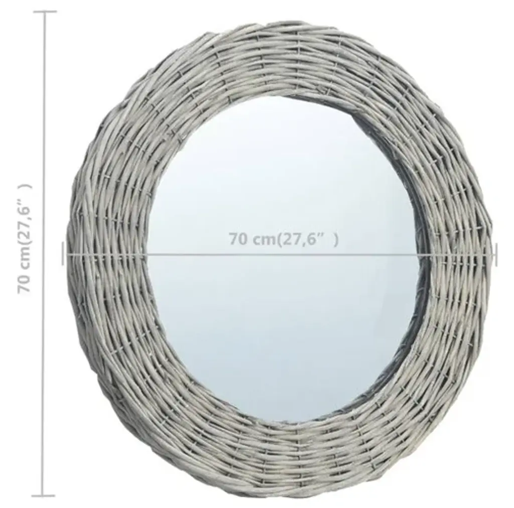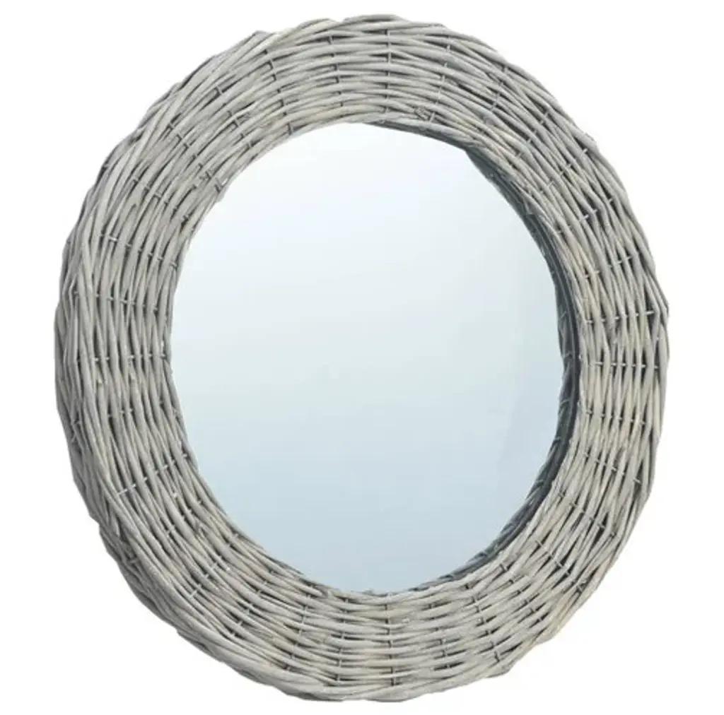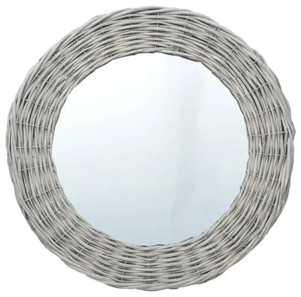 This mirror, featuring a real rattan frame, exudes a vintage charm and will make a perfect decoration to your home. It can be used in the hallway, bathroom, etc. The craftsmanship and the natural color make every piece of our wicker mirrors unique. The mirror can be easily mounted on the wall. Delivery includes 1 mirror and wall mounting accessories. Important note: These items are handmade, colors may vary from piece to piece, making each of our willow mirrors unique. The delivery is random, ensuring the exclusivity and individuality of your product.Material: Wicker, glassDiameter: 27.6"Easy to mount onto the wallAssembly required: YesDelivery contains:1 x MirrorWall mounting accessories