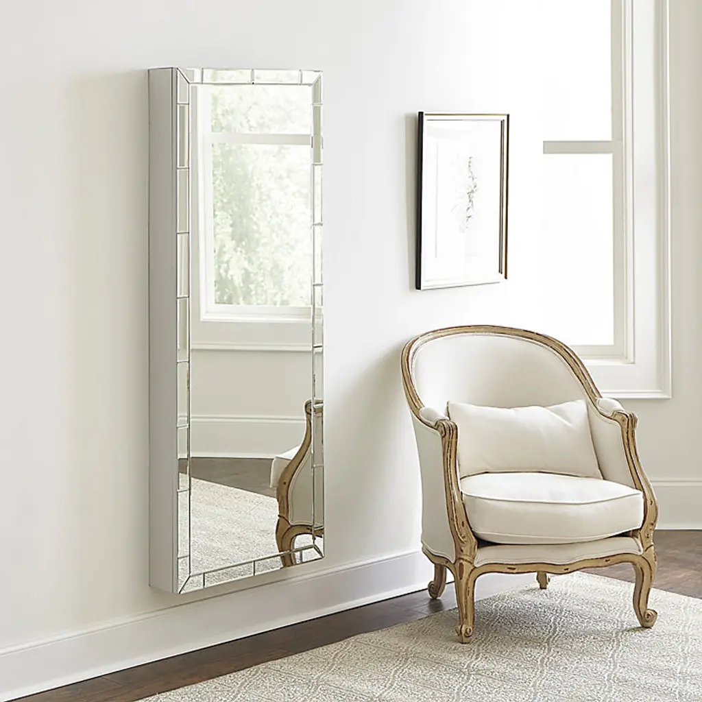 This Wall-Mounted Mirror Jewelry Cabinet is a stylish and practical addition to any bedroom or walk-in closet. It’s a smart way to organize your favorite jewelry and accessories. Its sleek rectangular design in a fresh white finish gives it a clean look while providing plenty of storage inside with clever compartments. Ample Storage: With four spacious drawers and three wall-mounted shelves, this cabinet offers plenty of room for all your jewelry and accessories. Each drawer is 2 in high, making it easy to keep everything safe yet accessible.Secure Locking: This cabinet comes with a reliable cam lock that keeps your precious items safe and sound. Perfect for homes with little ones or shared spaces.Versatile Design: Its modern and minimalist style fits right in with any decor, whether it’s contemporary or traditional. It not only provides storage but also adds a nice touch to your home.Easy Installation: You’ll get all the wall-mounting bits you need, making setup quick and easy. Whether you decide to mount it in your bedroom or a walk-in closet, it’s a breeze to install.Reflective Surface: The cabinet includes a quality mirror, perfect for checking yourself out and making your space feel bigger. It’s designed for function while looking great in your room.