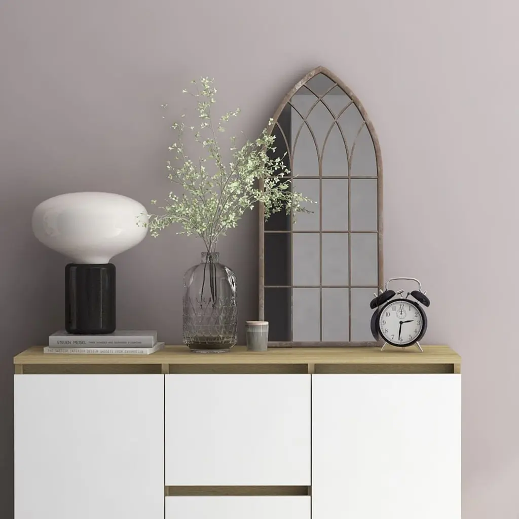 Check out this gothic arched window wall mirror! It's a real showstopper, designed to elevate the vibe of any indoor space with its elegant yet rustic charm. With its fancy details and smooth finish, it combines practicality and style effortlessly, making it a fab addition to your living room or bedroom, adding character and depth to your decor. Gothic Arched Design: The gothic shape adds a touch of class and history to your space, making it a focal point that draws the eye. Its intricate design, reminiscent of medieval styles, enhances both modern and traditional interiors. High-Quality Materials: Made from iron and glass, this mirror is built tough, promising years of beauty without sacrificing quality. The combo of metal and smooth glass gives it a strong yet elegant vibe. Rustic Finish: The rustic finish gives the mirror a vintage feel, adding warmth and a welcoming atmosphere, perfect for any room theme, particularly in homes with a vintage or country flair. Functional Decor: It’s more than just a pretty piece; it helps brighten up a room, making spaces feel airier and more open. Especially useful in dim areas, it creates depth and light. Easy Maintenance: This mirror’s low maintenance—just wipe it down with a dry cloth to keep it looking fresh, making it a practical addition to your decor.