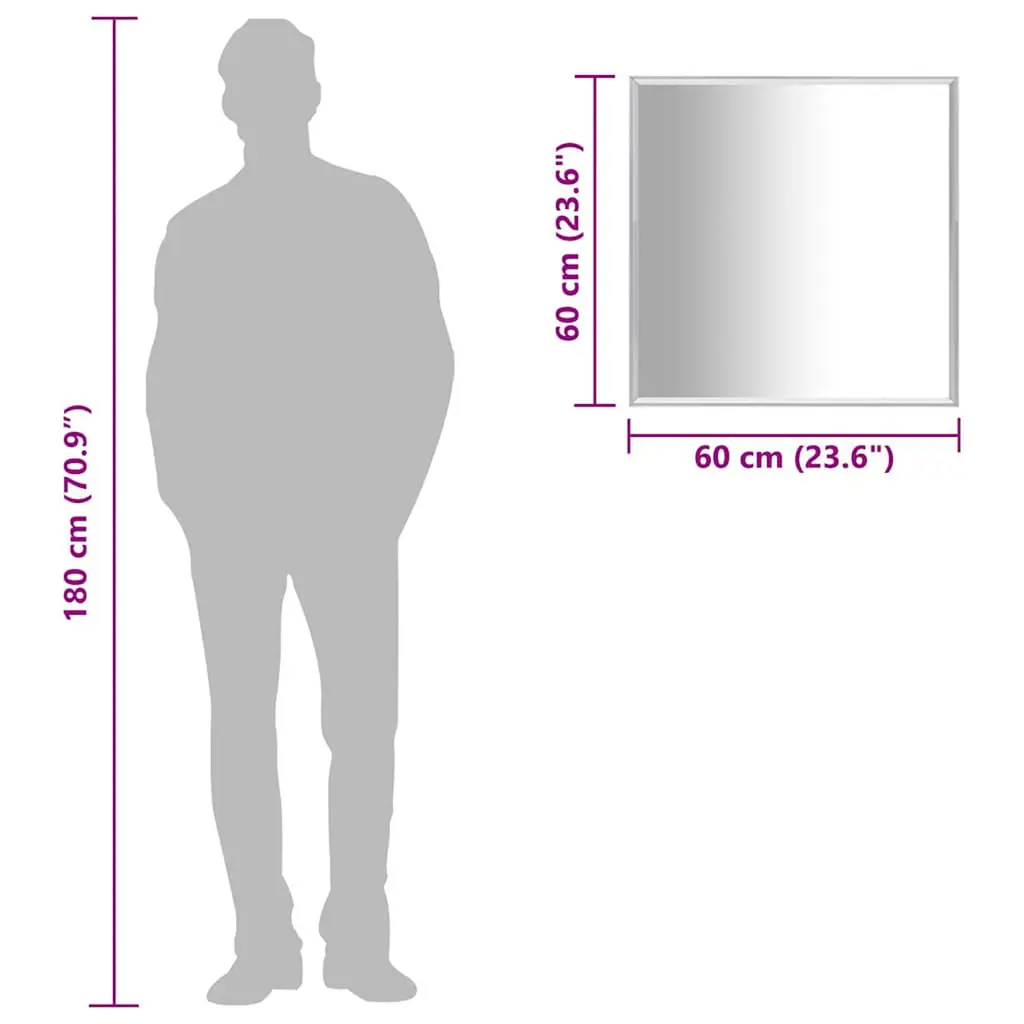 This Minimalist Square Silver Wall Mirror mashes up simplicity and elegance, making it spot-on for any modern decor. Its square shape and shiny surface bring depth and light to bedrooms, bathrooms, or living areas while being handy for your grooming. Top Materials: Made with quality glass and PVC for lasting looks. The synthetic materials ensure durability, making sure the mirror can handle everyday use and still look great.Sleek Minimalism: The minimalist design focuses on simplicity and practicality, meaning it fits well in any room while adding some understated elegance.Flexible Placement: Perfect for different spots like bathrooms, bedrooms, and living rooms. No matter where you put it, this mirror amps up the vibe while giving you a solid reflection for daily use.Easy Care: Keeping this mirror clean is a breeze; just wipe it down with a damp cloth. This easy upkeep means it stays looking fresh and new without putting in much effort, so you can enjoy its charm in your home.Space-Friendly: Designed to fit in snug spaces, its 23.6x23.6 in size is just right for compact areas. Whether you're at home or in a flat, this mirror works as both decor and a useful item.