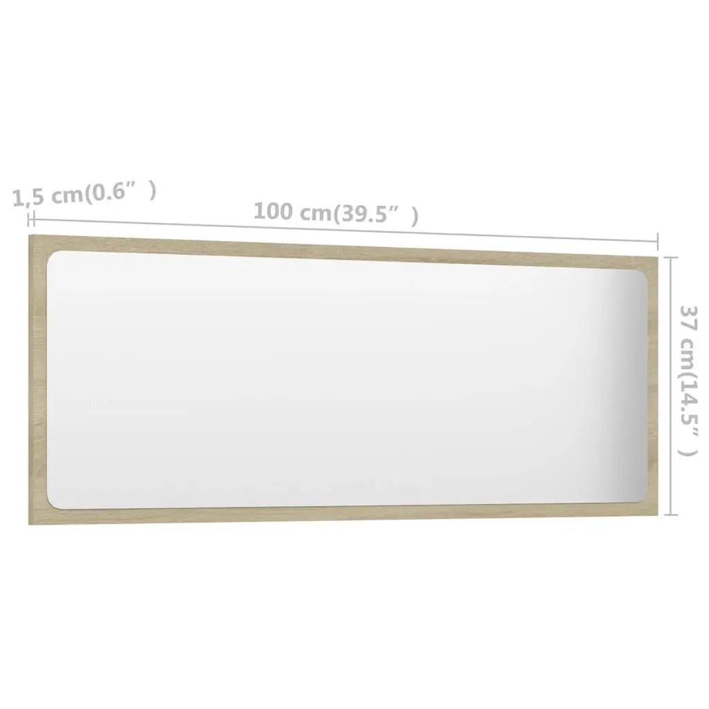 Vidaxl Mirror Sonoma Oak Engineered Wood, Acrylic 39.4 X 0.6 X 14.6 In