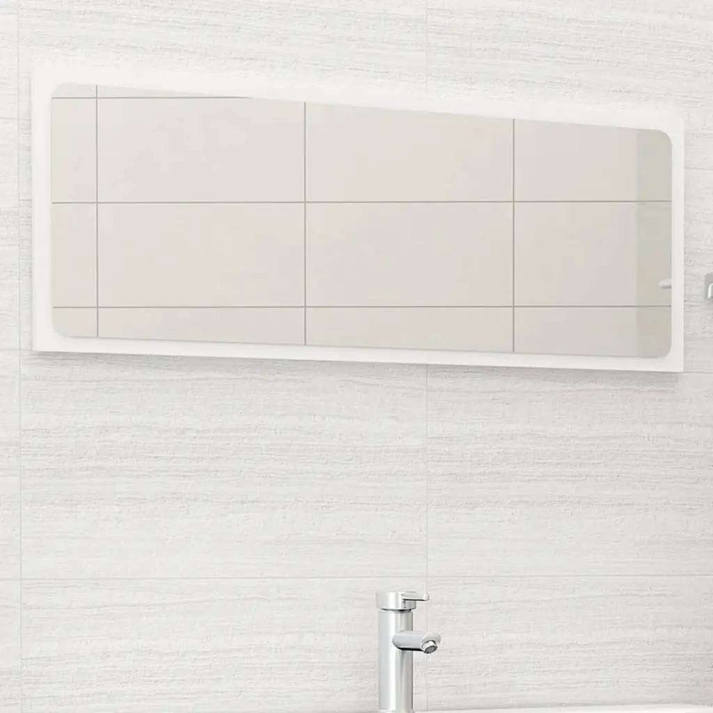 This White Rectangular Bathroom Mirror is all about style and function. At 39.4 x 0.6 x 14.6 in, it has a lovely smooth surface that reflects your surroundings beautifully, making it a great pick for both tiny and large spaces, while also lifting the overall vibe with its contemporary look. Smart Finish: The matte white finish of the mirror looks great in modern bathrooms and adds a touch of elegance.Spacious Reflective Area: The 39.4 in length provides wide reflections, which are essential for grooming and makeup tasks.Durable Build: Made from engineered wood and acrylic for long-lasting wear.Easy to Install: Comes designed for wall mounting with two secure points, making it a breeze to fit into any bathroom.Subtle Semi-Opacity: The semi-opaque quality introduces a unique element to its design while keeping reflectivity.