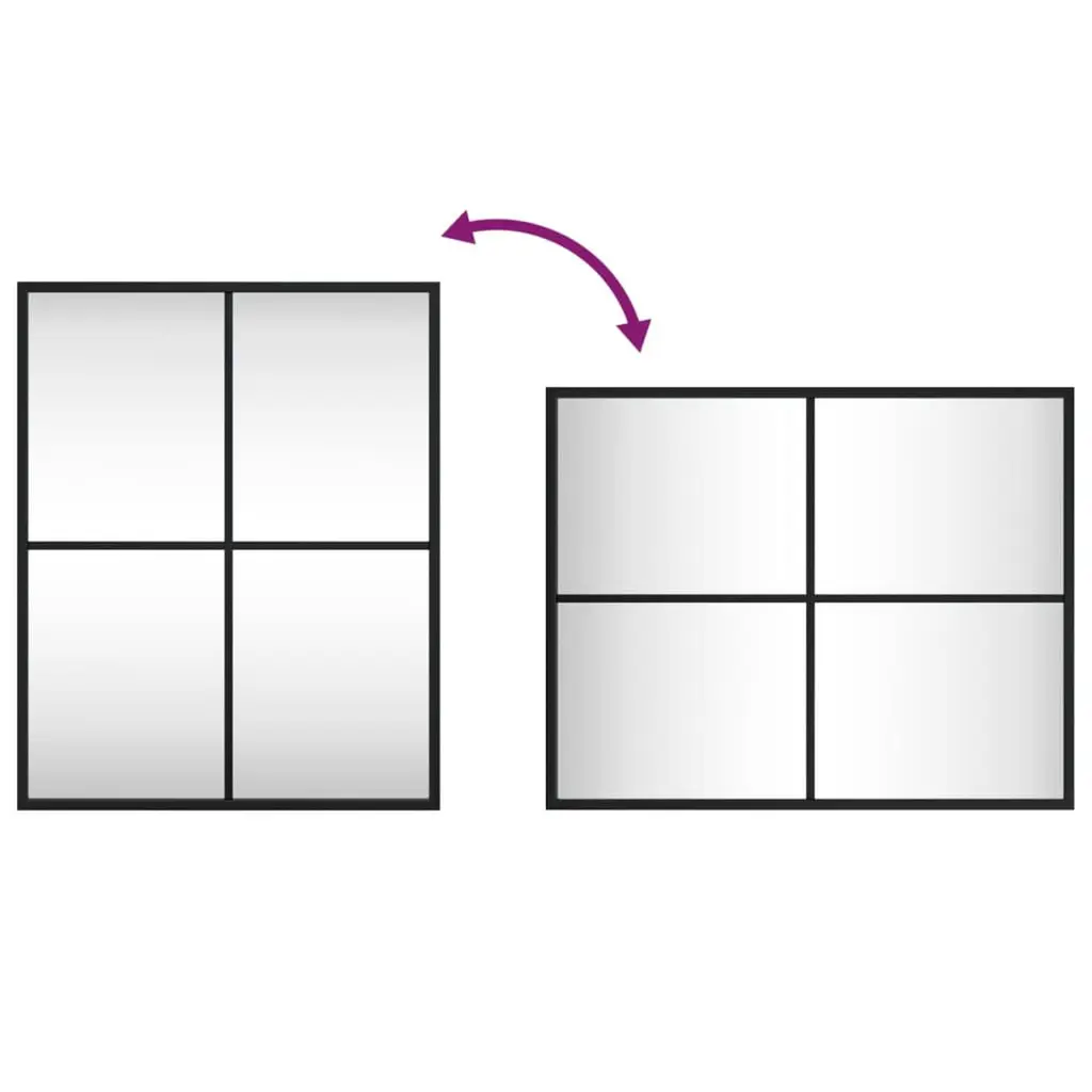 Vidaxl Wall Mirror Black Glass, Powder-Coated Iron 15.7 X 19.7 In