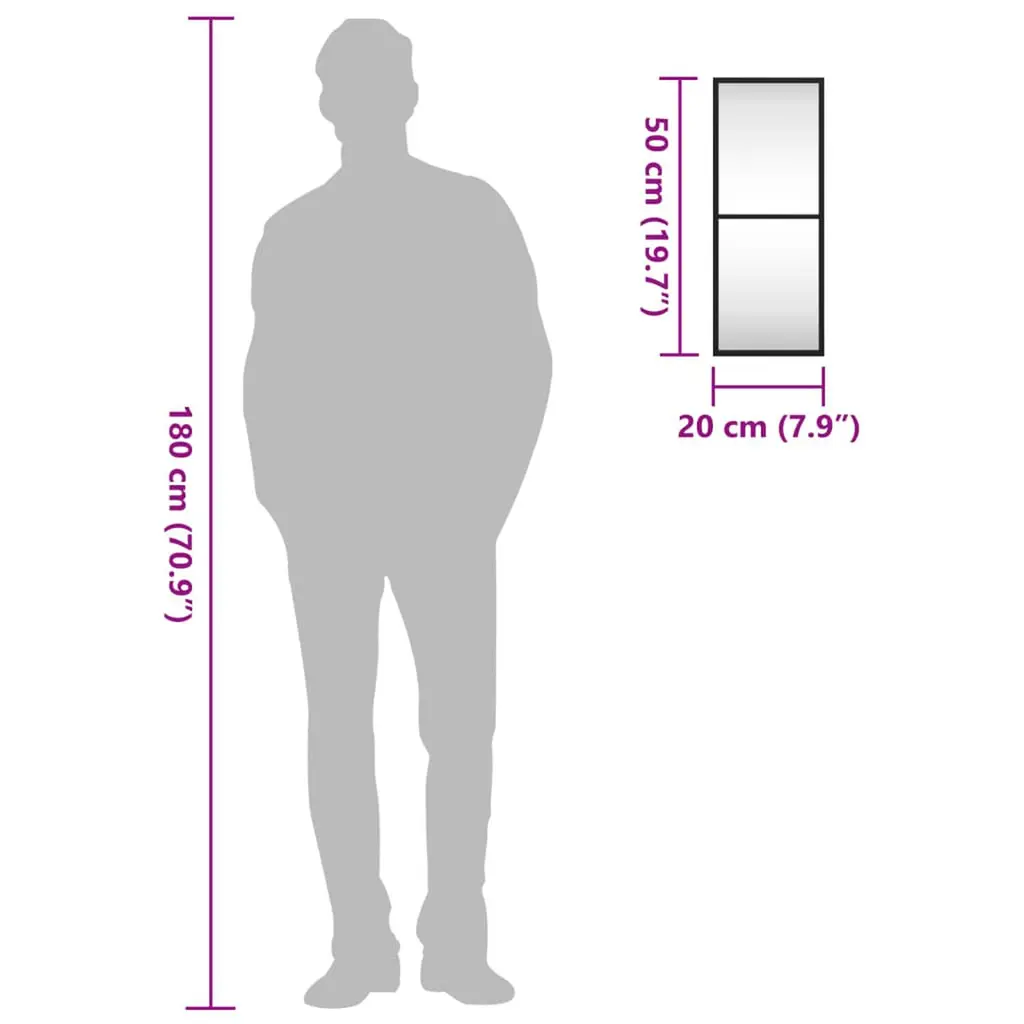 Vidaxl Wall Mirror Black Glass, Powder-Coated Iron 7.9 X 19.7 In