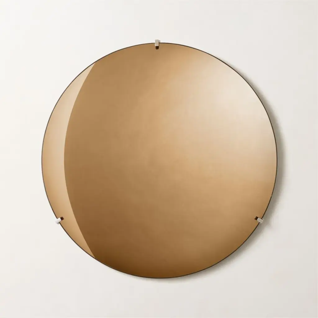 Statement reflective decor piece in curved smoke mirror glass, pushing the boundaries of what's possible with mirror and materiality. Sculptural glass is is held in place with simple metal clips. CB2 exclusive.