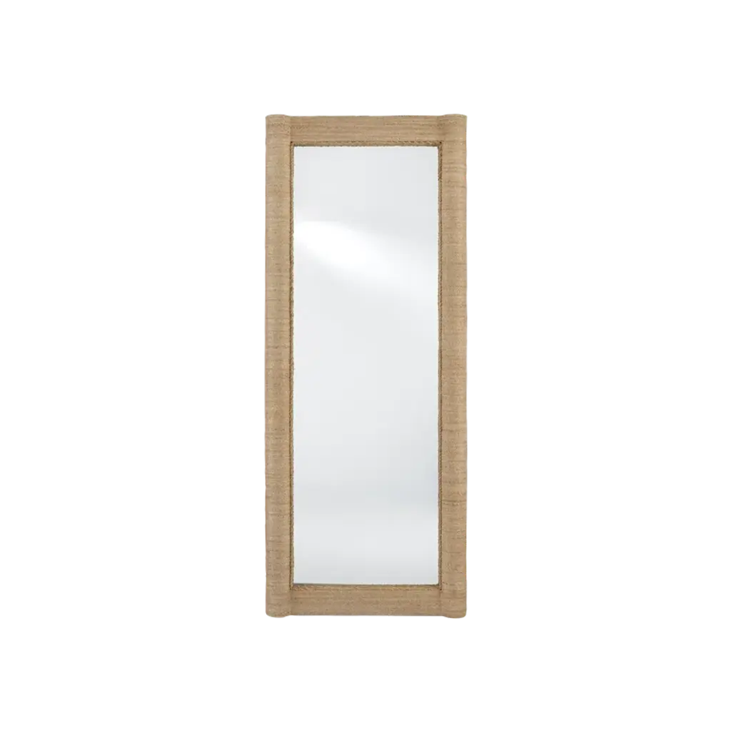 A beautifully arched mirror, framed out by rose gold-finished aluminum.