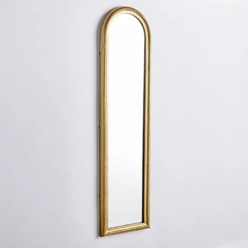 Brightness, depth, and clarity. With its full-length size and slender metal frame, this mirror opens up your space + reflects your outfits. An arched shape breaks up the straight lines of a room – and adds interest to selfies. Lean it against a wall or mount it with the included hanging rings.