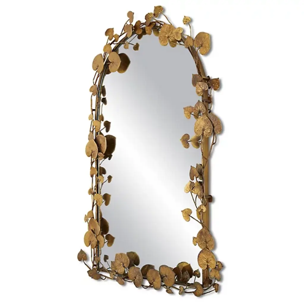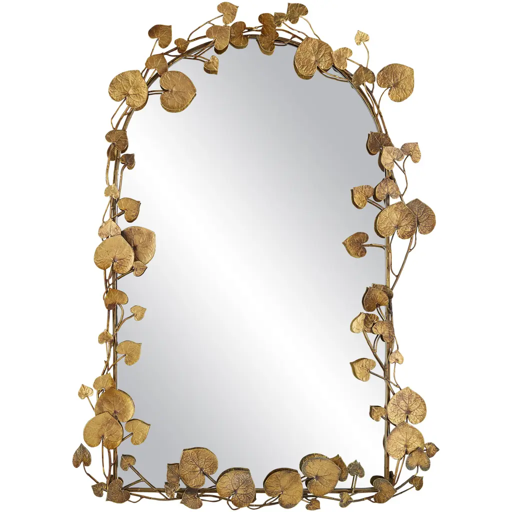The Vinna Arch Wall Mirror from Currey & Company brings a refined natural touch to walls with its gracefully curved upper frame. Hand-shaped and finished, the cast aluminum leaves and winding vines offer a subtle mix of texture and durability. Its arched silhouette adds a sense of openness, suggesting vines around an old window, giving it a vibrant, nature-inspired character.