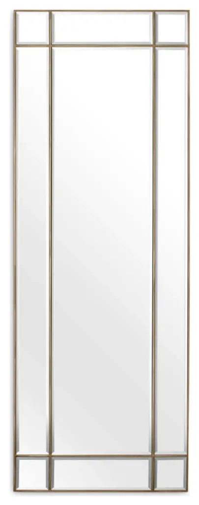 Style your decor with the window-shaped Beaumont Mirror that can be hung both horizontally and vertically. With a vintage brass finish frame and beveled mirror glass, this rectangular wall mirror is perfect if you''re looking for a nostalgic look.W31 x D84 x H2 in | Weight 88lbsMaterials | Stainless, Iron, GlassFinished | Vintage Brass