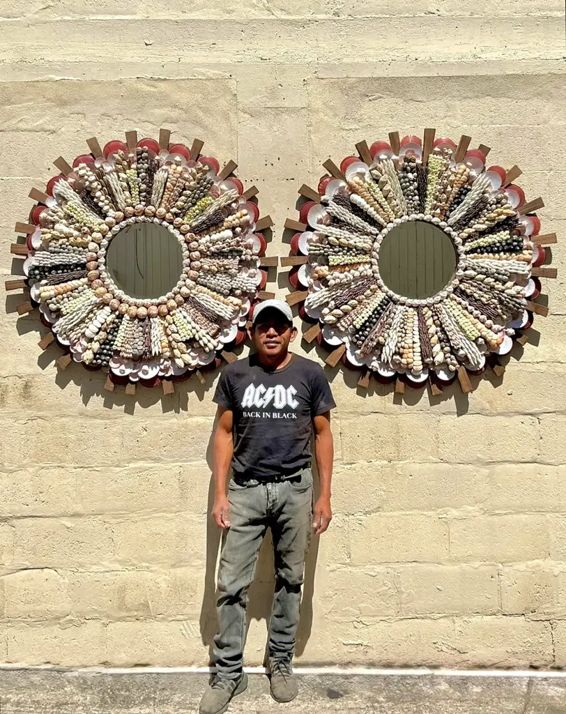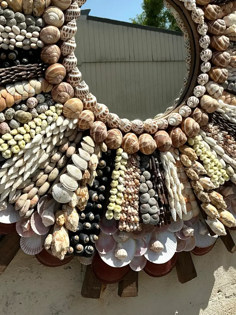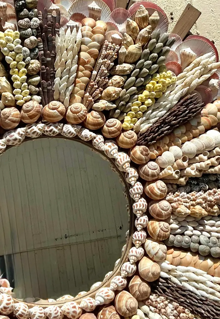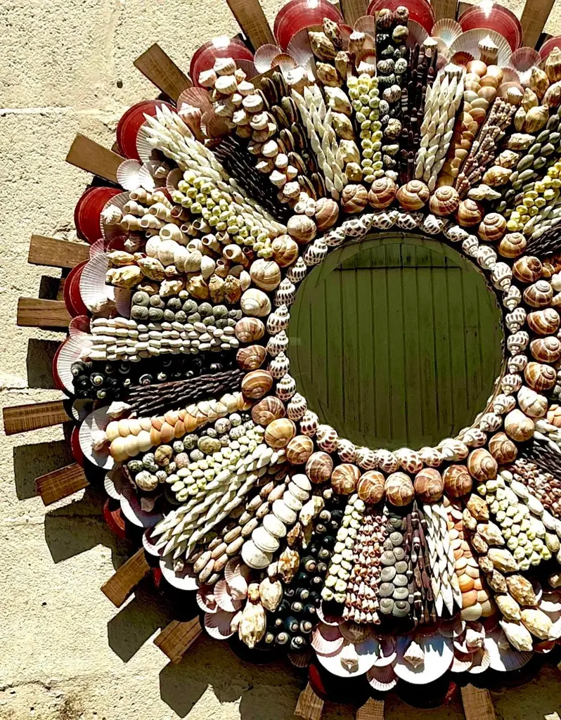 Bring a touch of the sea into your home with this stunning vintage coastal mirror, lavishly encrusted with an array of natural shells arranged in a mesmerizing sunburst design. Radiating seaside charm and artisanal craftsmanship, this one-of-a-kind mirror transforms any space into a serene coastal retreat. The earthy, oceanic tones paired with intricate textural layers make it a standout piece for beach houses, bohemian interiors, or eclectic galleries. In excellent vintage condition, this shell-encrusted mirror measures 45” W x 3.5” D x 45” H and is ready to be the focal point of any wall. Its bold, dimensional frame blends effortlessly with coastal, classic, and mid-century modern decor. Perfect above a console, fireplace, or entryway, this mirror invites natural light and artistic elegance into your space. Don’t miss the opportunity to own this conversation-starting coastal treasure. Two mirrors available on my Chairish page.