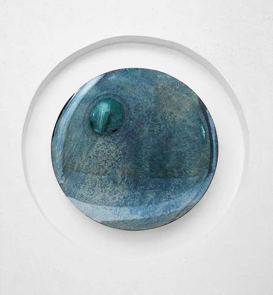 Vintage Fall Contemporary Sculptural Mirror by HomaDimensions: D 97 x H 7 cmMaterials: Convex Oxidized Mirror. HOMA is a contemporary design atelier based in Istanbul. The atelier’s trademark processes are handblown glass, glass fusing and mirroring, created through the use of multidisciplinary techniques and materials. Over time, with meticulous research and experimentation HOMA has acquired unique expertise in mirrors, lighting and home interior objects thus elevating things of function to the status of art. Handcraft HOMA has discovered one of the last remaining masters of handcrafted mirroring in the Eastern Mediterranean. The atelier is original in its simultaneous use of different techniques to create organic and flowing mirror shapes. Each piece celebrates reflection, translucency, movement, light, time, multiple layering and aesthetic, spontaneity…Object HOMA’s pieces are an exploration of organic, abstract, as well as unexpected flowing lines and shapes. Our design service offer is presented in a catalogue of over 50 designs in fluid and geometric shapes achieved through multidisciplinary techniques.Materiality Through the use of mixed textures and the layering of mirror elements unexpected effects are created on glass, which play with one’s visual perception as well as the surrounding space. Glass, stone, marble, messing mirror techniques, bronze, wood and clay are just some of the Earth’s materials that find their way into HOMA’S offerings. HOMA offers a vast materials library.Architecture Formally trained in interior architecture, HOMA founder, Tuğba Koç has transformed her knowledge and experience into layered aesthetic design objects. Now, with a team of architects and artisans, Tuğba applies her hands in a workshop environment on interior and exterior objects to enrich earth-derived, breathing, living materials. HOMA’s interior objects are informed by art and driven by the philosophy that nothing artificial should be allowed to interfere with the energy of one’s living environment.