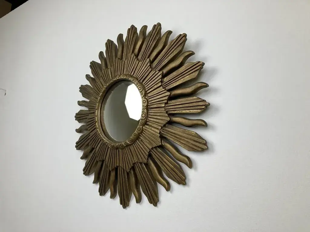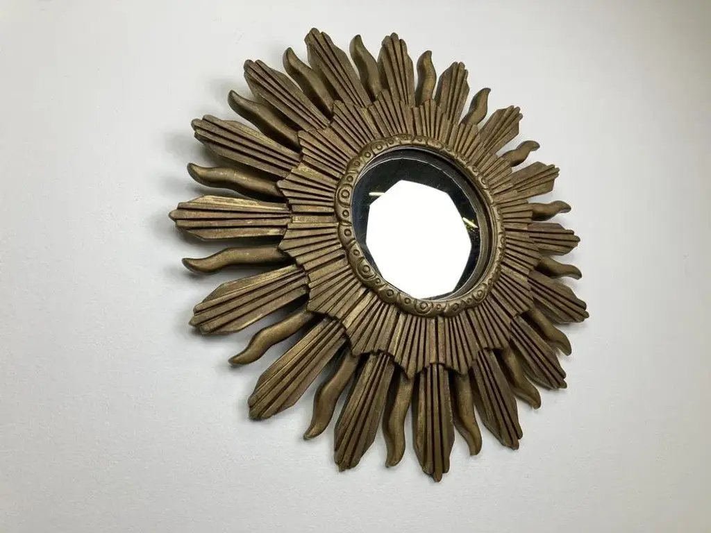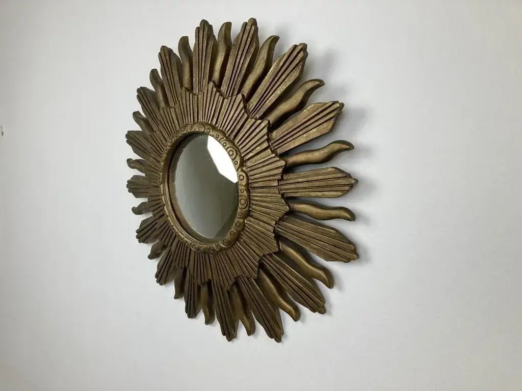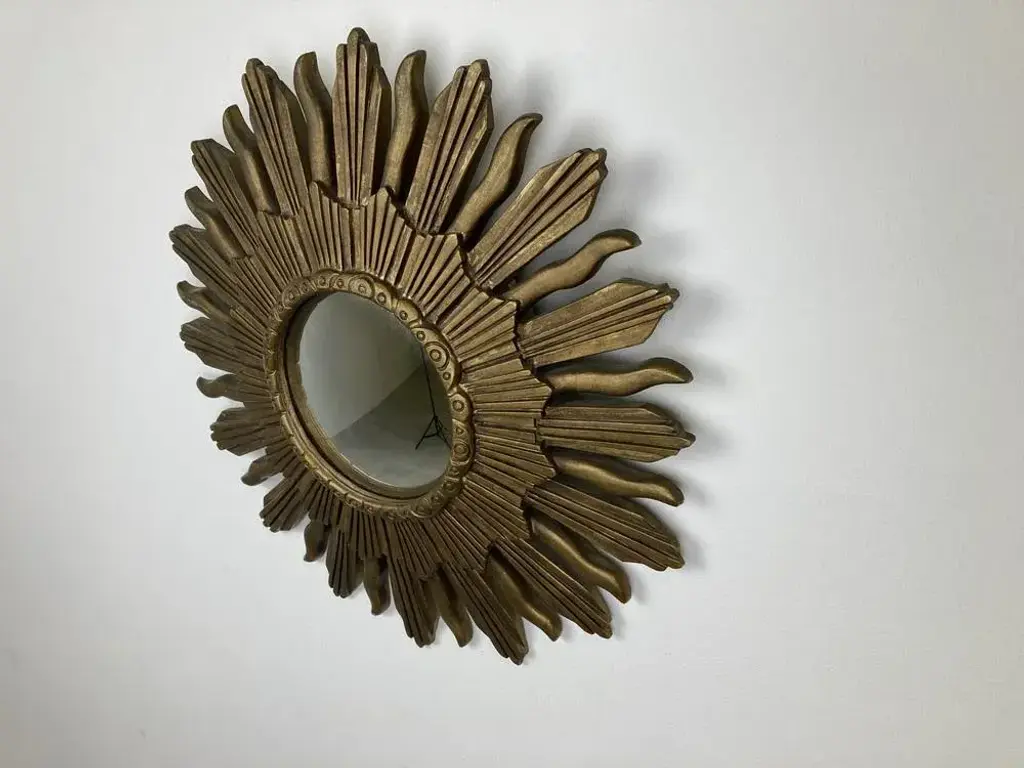 Vintage Golden Sunburst Mirror, 1960s, in Flawless conditions. Designed 1960 to 1969