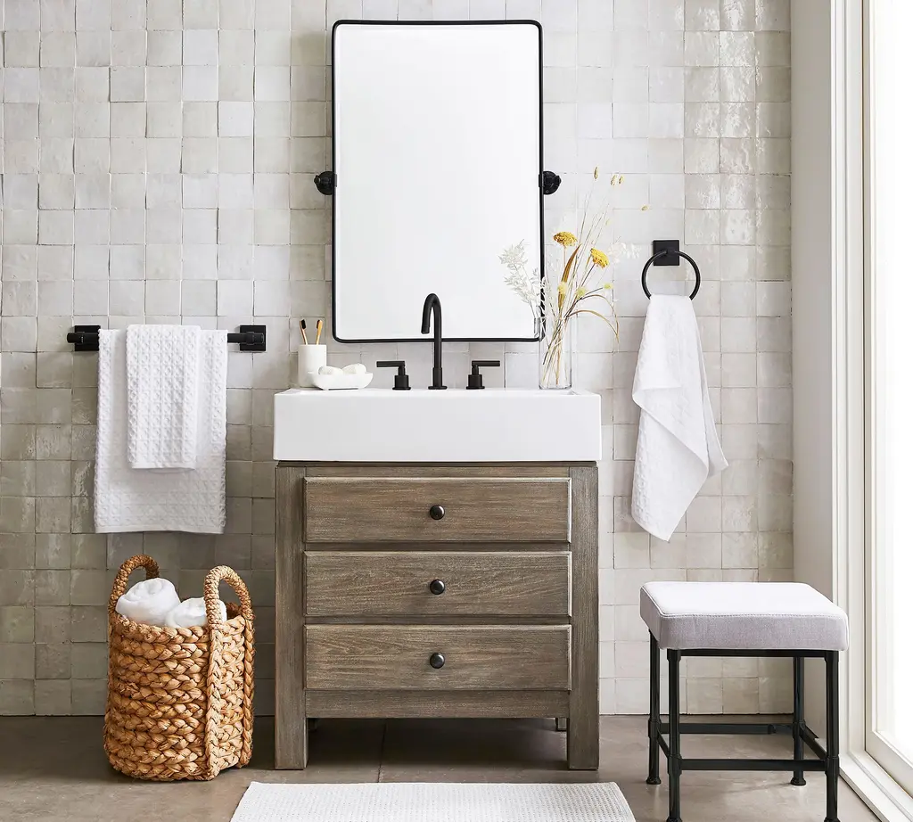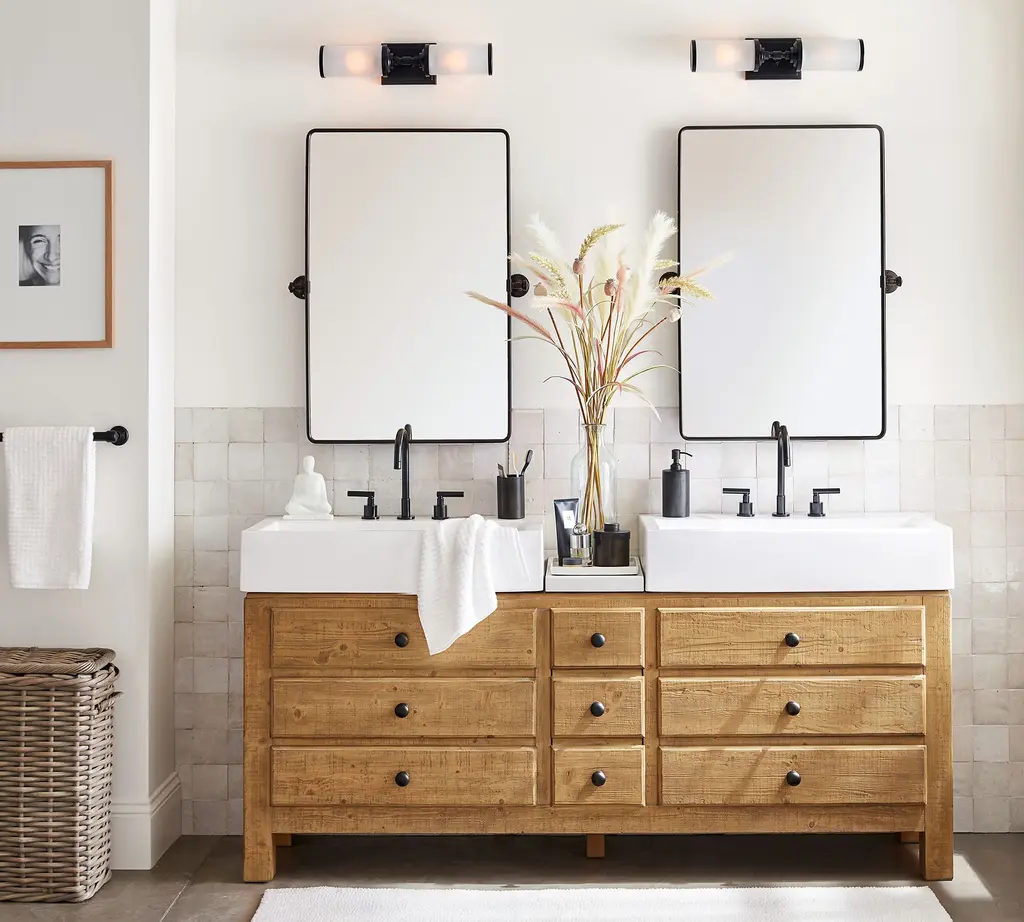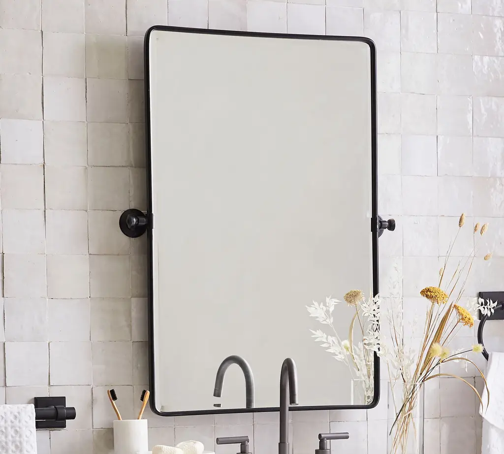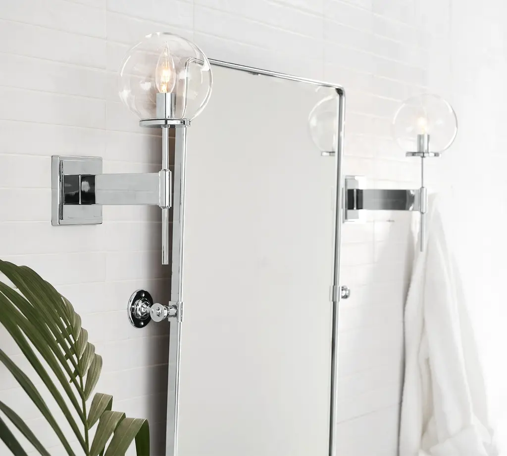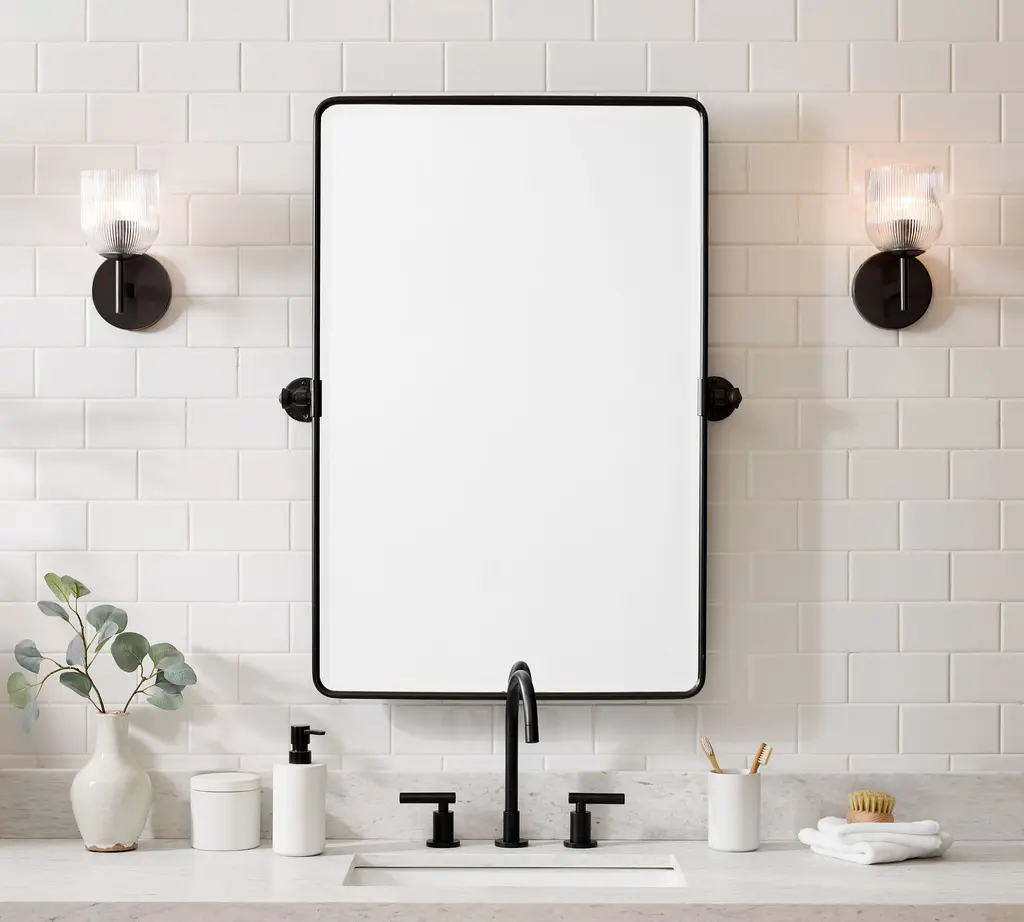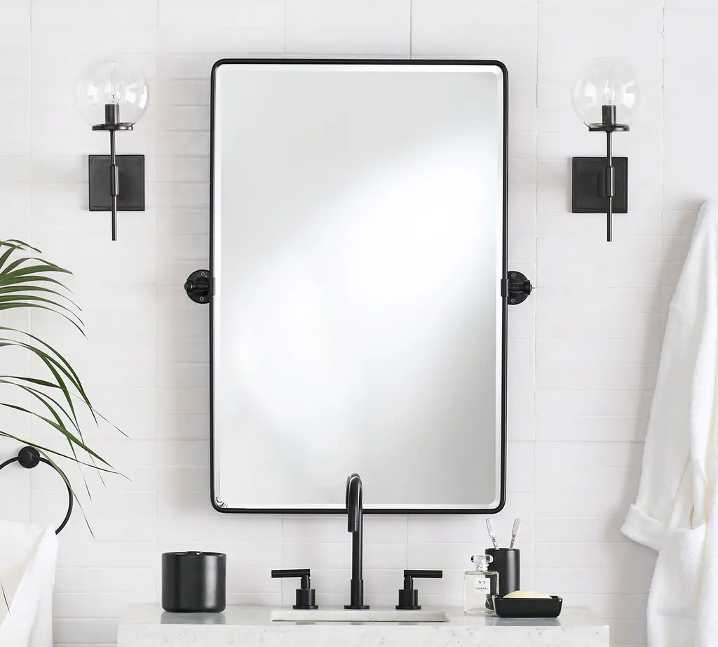 Reflecting the style of mirrors found in hotels a century ago. The rounded edges and clean design add a refined look that complements modern baths. Thoughtfully designed, this pivots so you can easily adjust it to the perfect height.