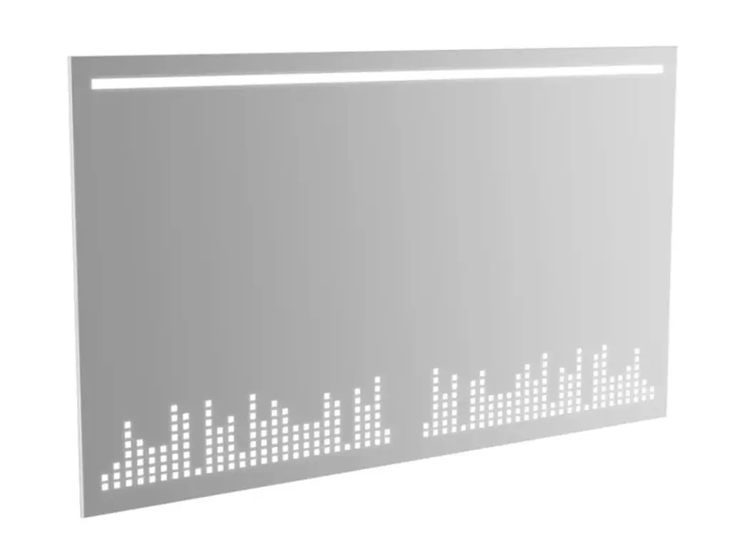 VINYL is a wall hung mirror with light led system in 2 sizes.Futuristic but at the same time romantic and nostalgic, simply in one word: unique. We are going to present Vinyl, the latest creation by Gianluca Paludi, artistic director and designer at Olympia Ceramica. Observing it, you will have in front of you an authentic musical console from the 1980’s: the recessed basin is like the DJ turntable on which sits a priceless vinyl, the mixer is like the arm for switching on the music on a record player and it consists of a stylus. The two handles for volume control become the regulators for water pressure and temperature. The furniture console, completed by the storage drawer, hosts a music amplifier linked by Bluethoot, with the small holes on the front indicating the speaker location. The total structure, that it is possible to create using different colors, houses a tempered glass shelf, a towel rail and a comfortable leather bag suitable for containing the different kinds of accessories. The LED mirror reveals lights both on the higher and on the lower side, with the latter replicating the music equalizer image.Vinyl: for those that appreciate nostalgia, the years of the legends, or for those who wants to race to the future but keeping an eye on the traditions, on the rhythm, on the entertainment from the funniest decades ever.The composition contains:- Mirror- Mixer- Top- Washbasin- Mobile console- Acoustic diffuser- Siphon
