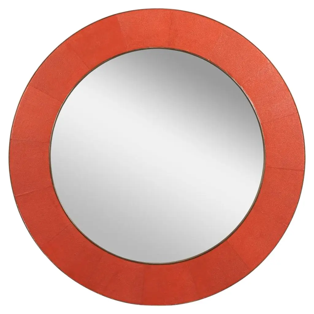 This mirror features a round frame with a ribbed texture. The entire piece is then finished in our glossy orange lacquer. It is a perfect focal point for an entryway, bathroom, bedroom or any room in your home. D-rings are affixed to the back of the mirror so it is ready to hang right out of the box! The mirrored glass on this piece has a bevel adding to its beauty and style. The Virginia Mirror can be hung vertically or horizontally. The Virginia Mirror is part of our custom paint program and is available in one of ten vivid colors. It is proudly painted in the USA.