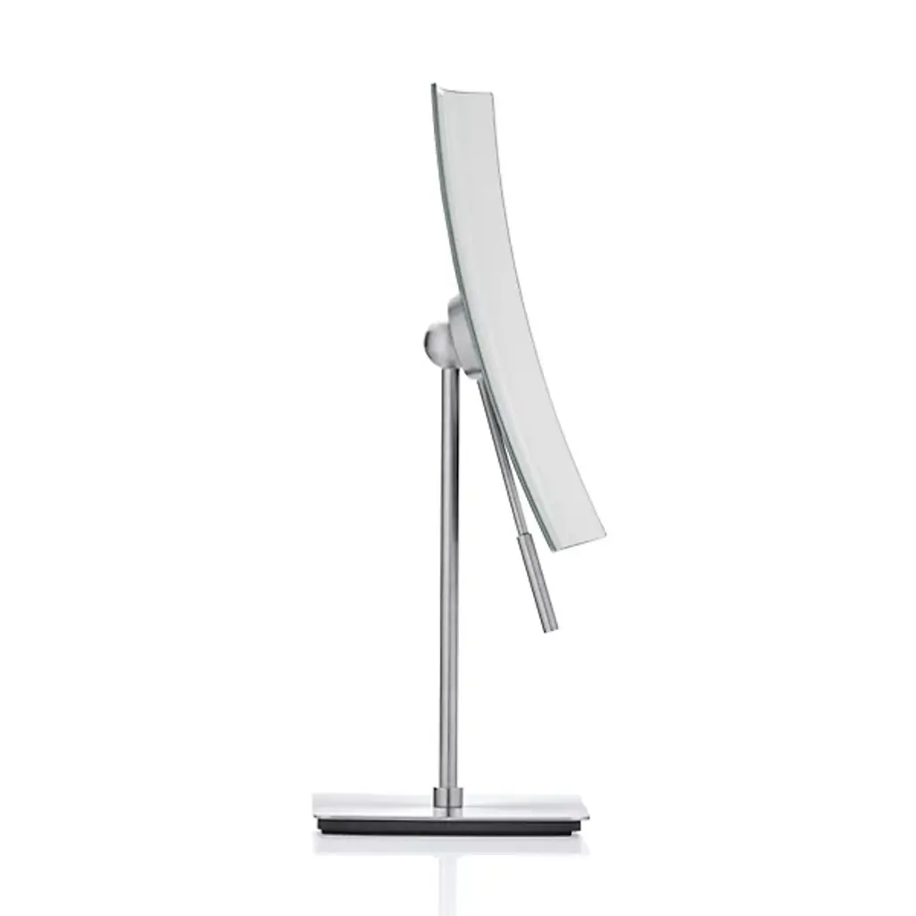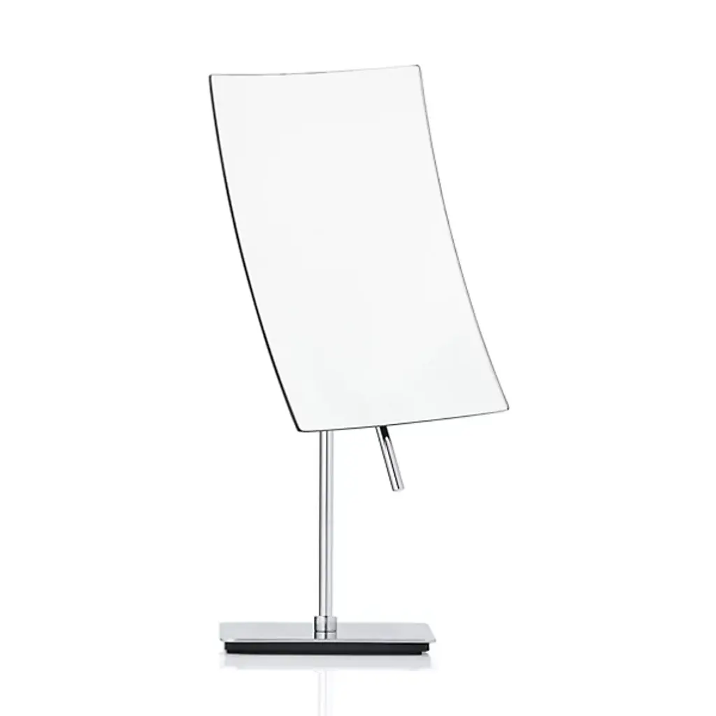 The Blomus VISTA Vanity Mirror curves in slightly at each corner and offers 5x magnification for easy make-up application and skin care. The mirrored surface is easily adjustable--and even removable--on a special magnetic ball and socket joint. The entire base is made out of stainless steel.