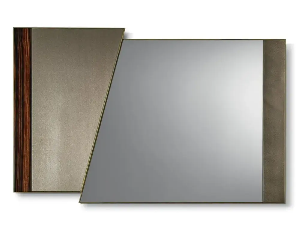 A refined variation of the sophisticated atmospheres of the forties American design for a small mirror characterized by rigorous geometric patterns and the decisive chromatic alternation between the black edge and the internal frame, available in five colors.