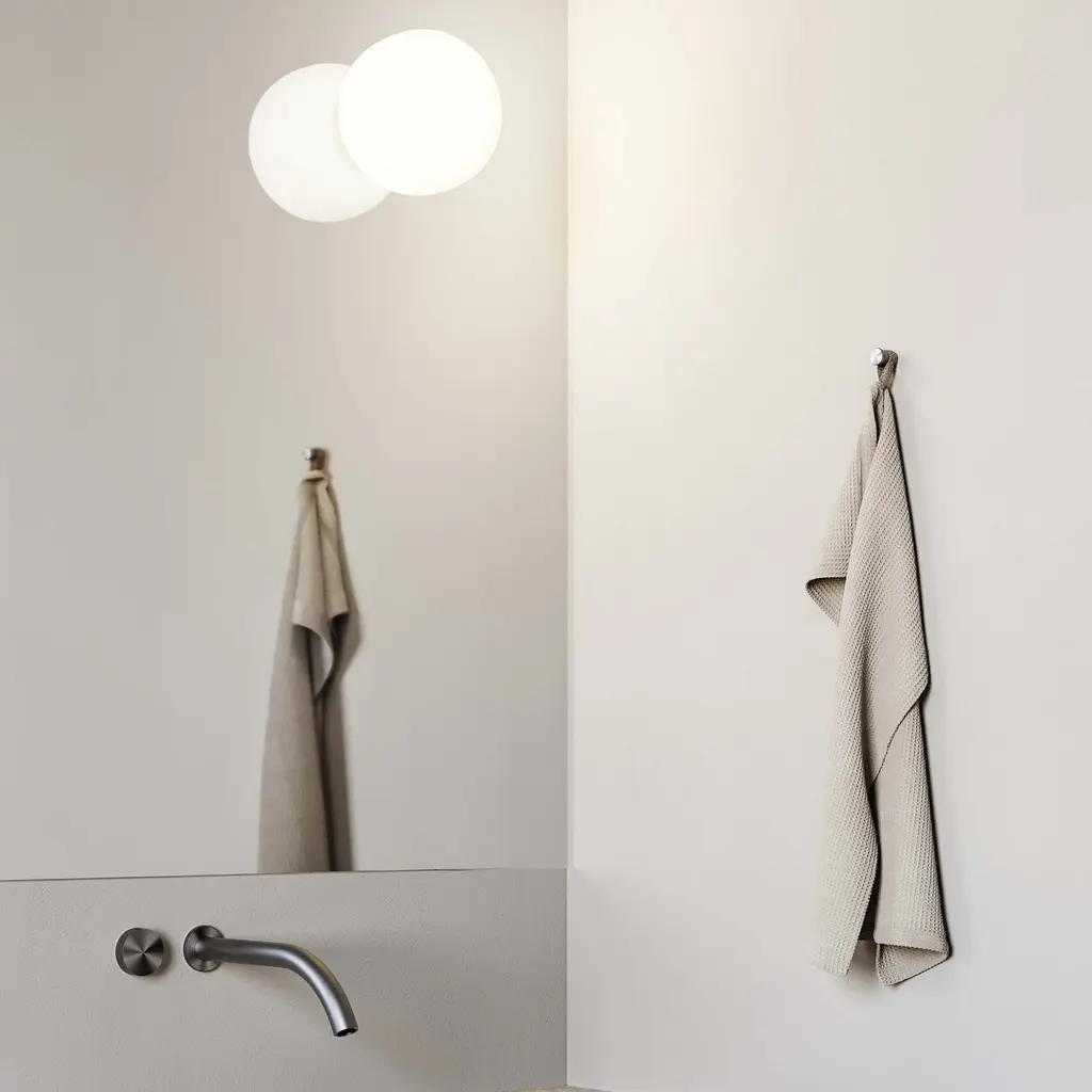 The Volum Mirror Wall Sconce from Lodes exemplifies sophisticated design through its elegant simplicity and artisanal craftsmanship. Created in partnership with Snøhetta, this lighting piece features handcrafted blown glass spheres with a glossy white finish that softly and evenly diffuses light. Its subtly unique shapes honor traditional glassblowing techniques while delivering balanced, all-around illumination suited for diverse functional and aesthetic settings. This sconce offers a timeless, refined touch to any interior space. Highlights