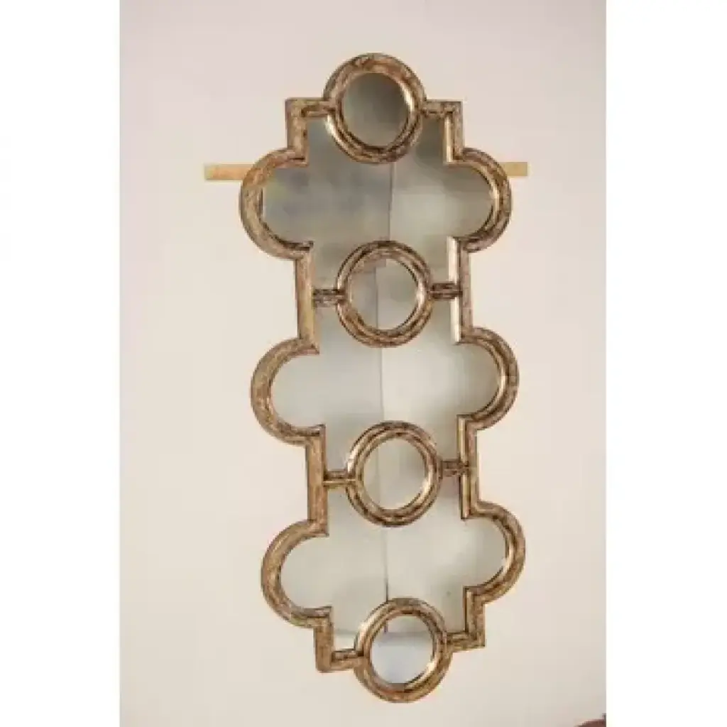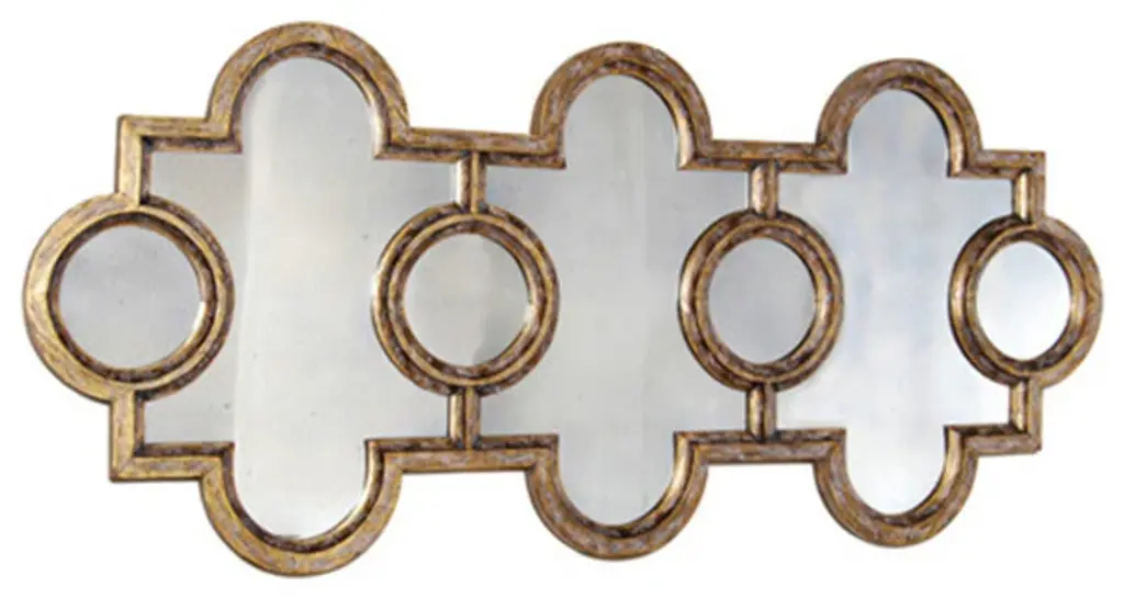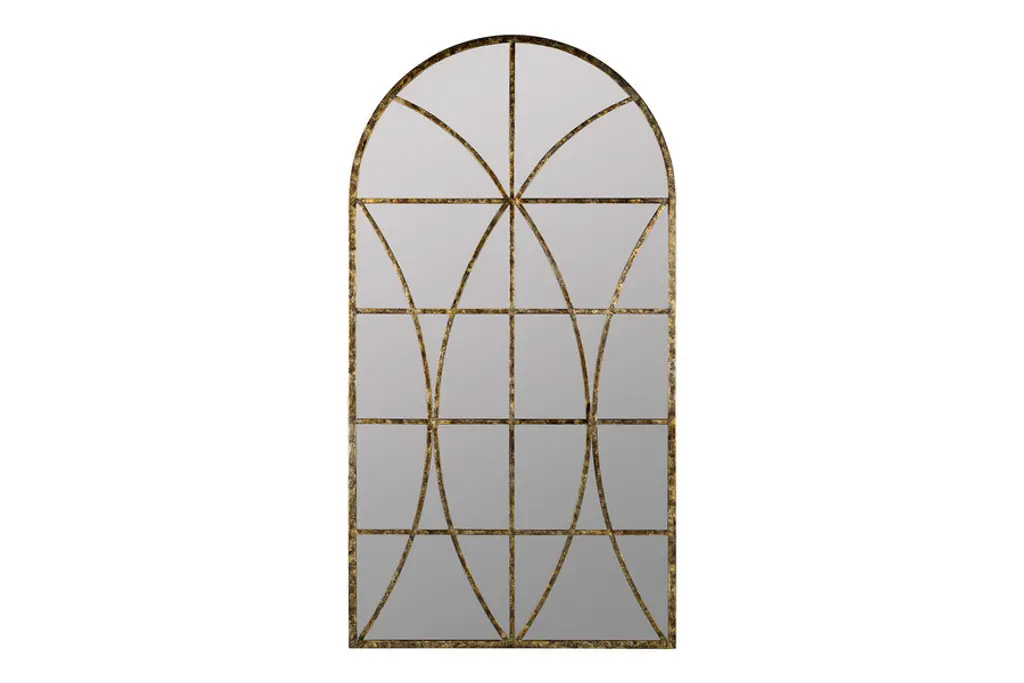 Crafted from solid mindi with a burnished gold leaf finish. Antique mirror.