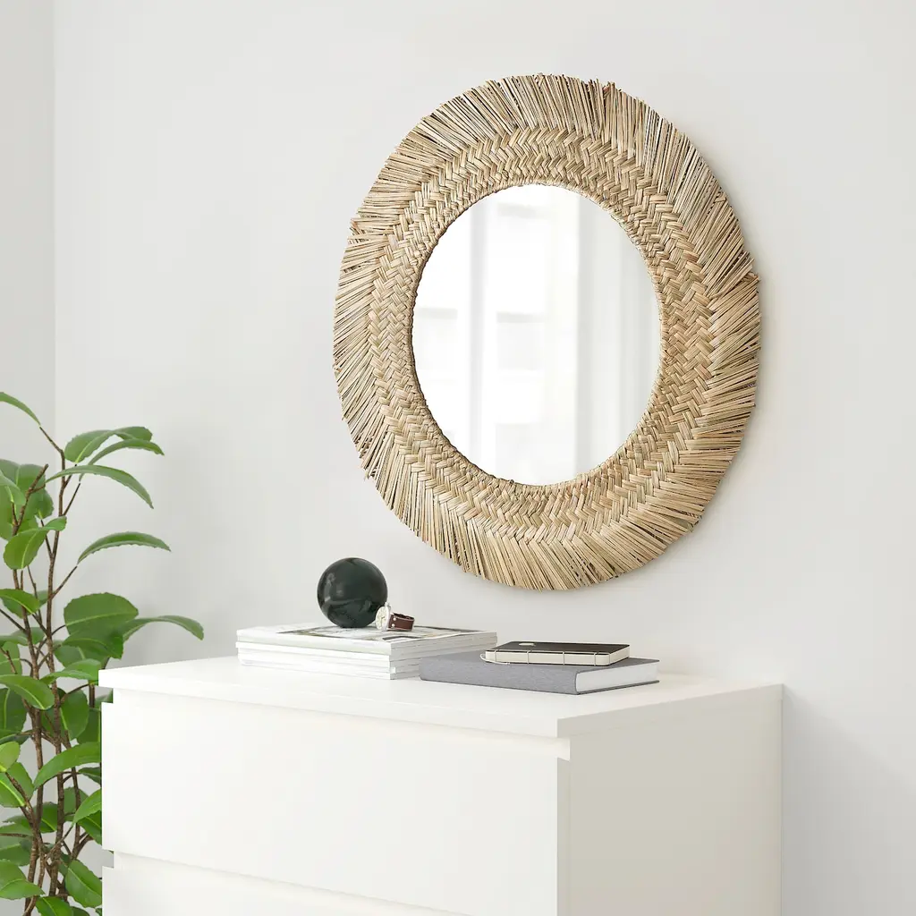 VRIGSTAD Mirror - sedge 24 ¾ ". Skilled craftspeople have woven the natural fibers by hand, which makes each mirror unique. The mirror is just as functional as decorative and adds life to an empty wall. The material brings a piece of nature into your home and spreads a calm, warm feeling.