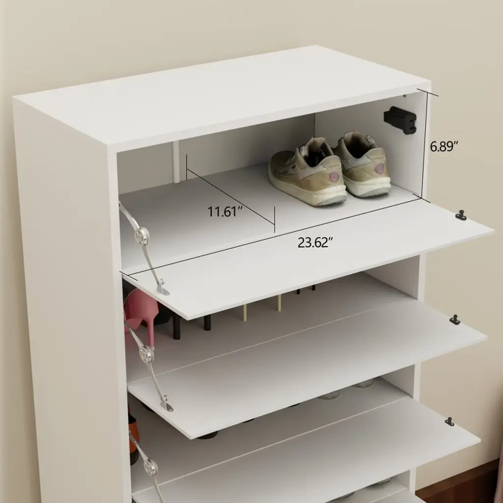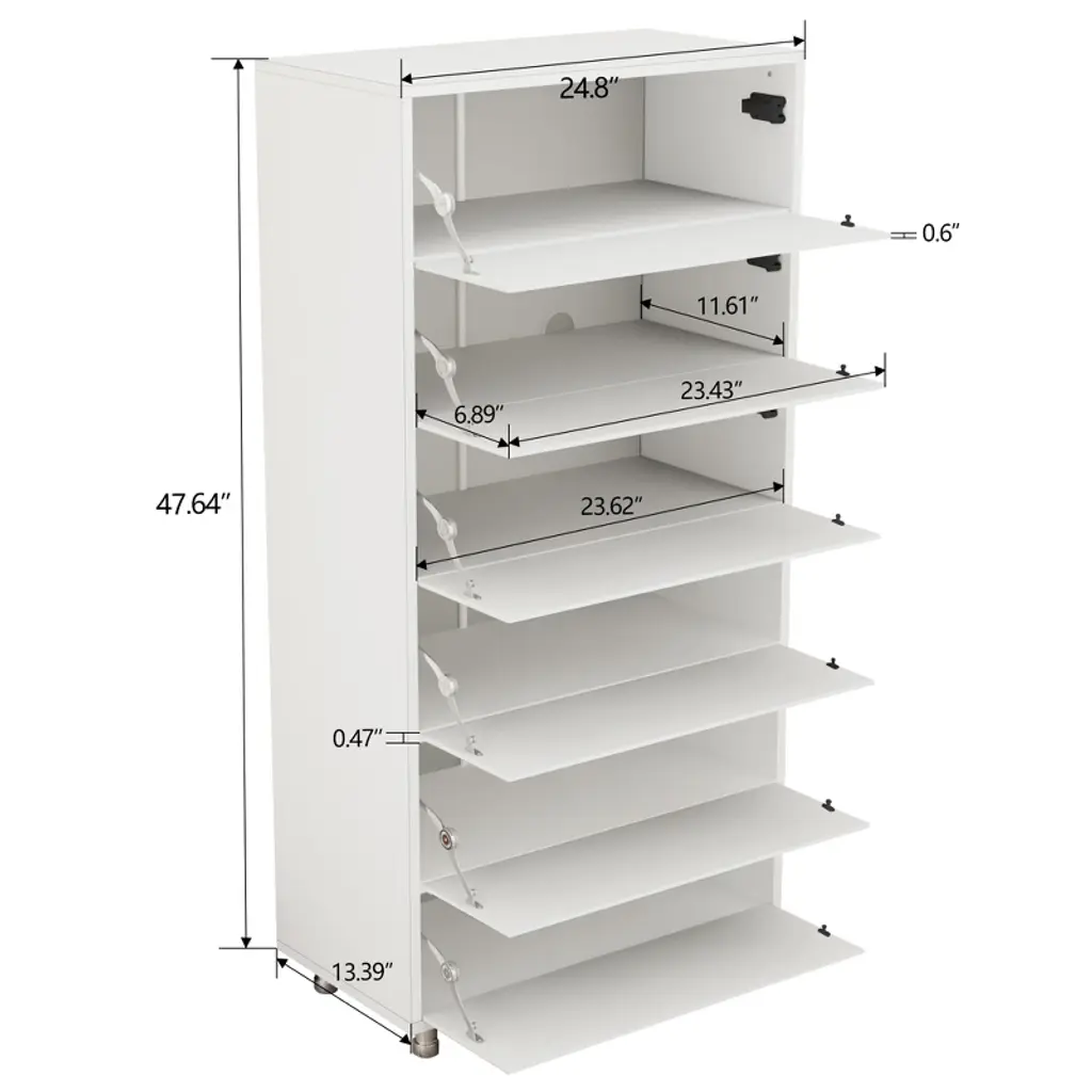 Vynxaria Mirror Shoe Cabinet With 6 Flip Drawers, Mirror Shoe Rack Organizer Store Ample Shoes, Mirror Shoe Storage With 4 Metal Legs, White