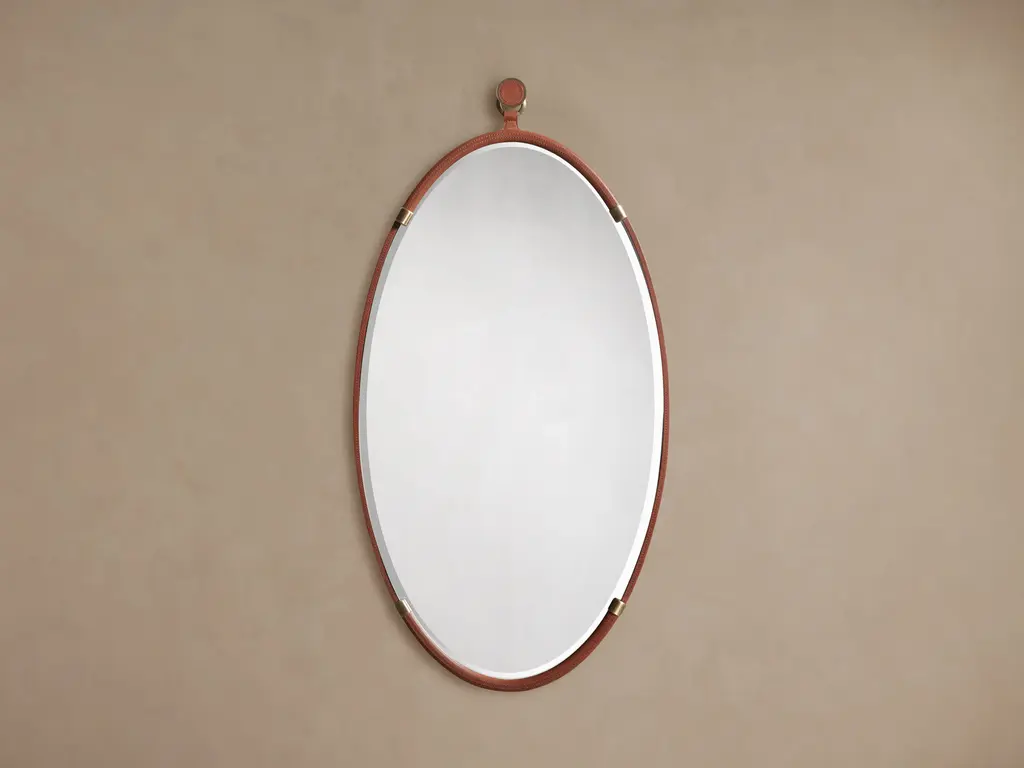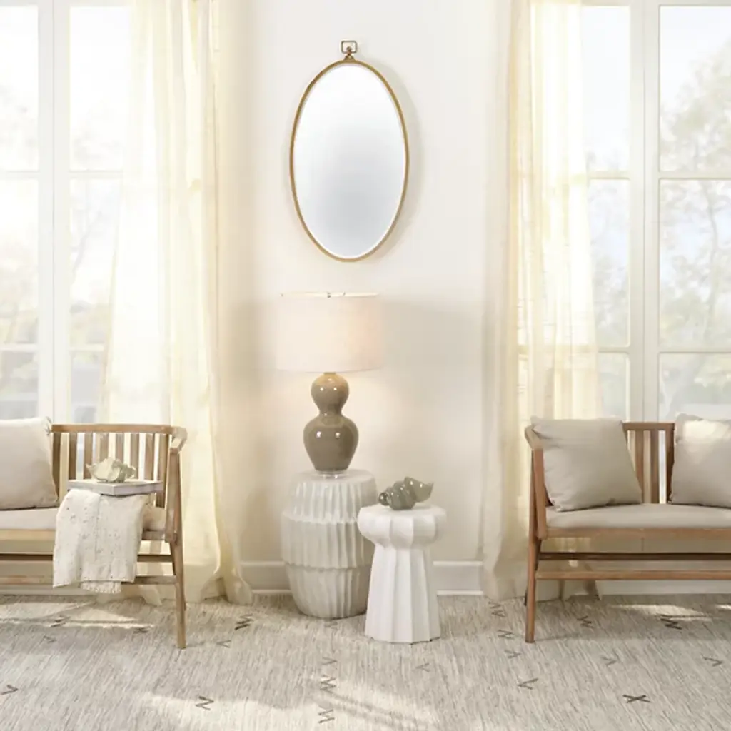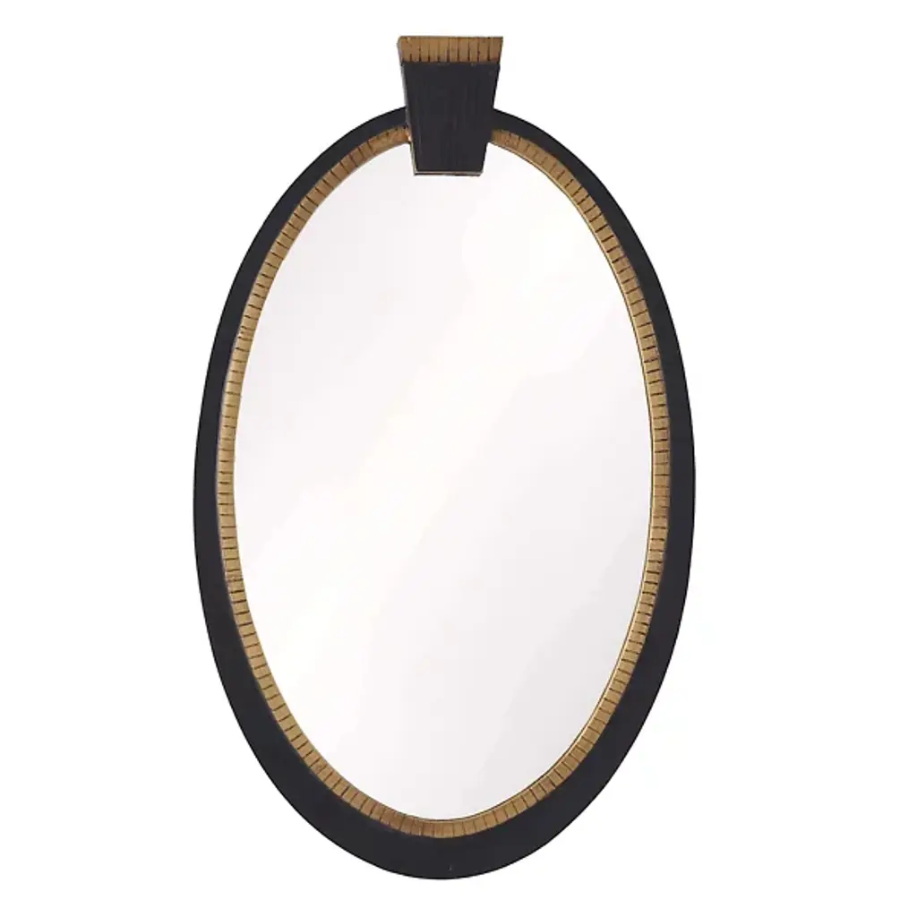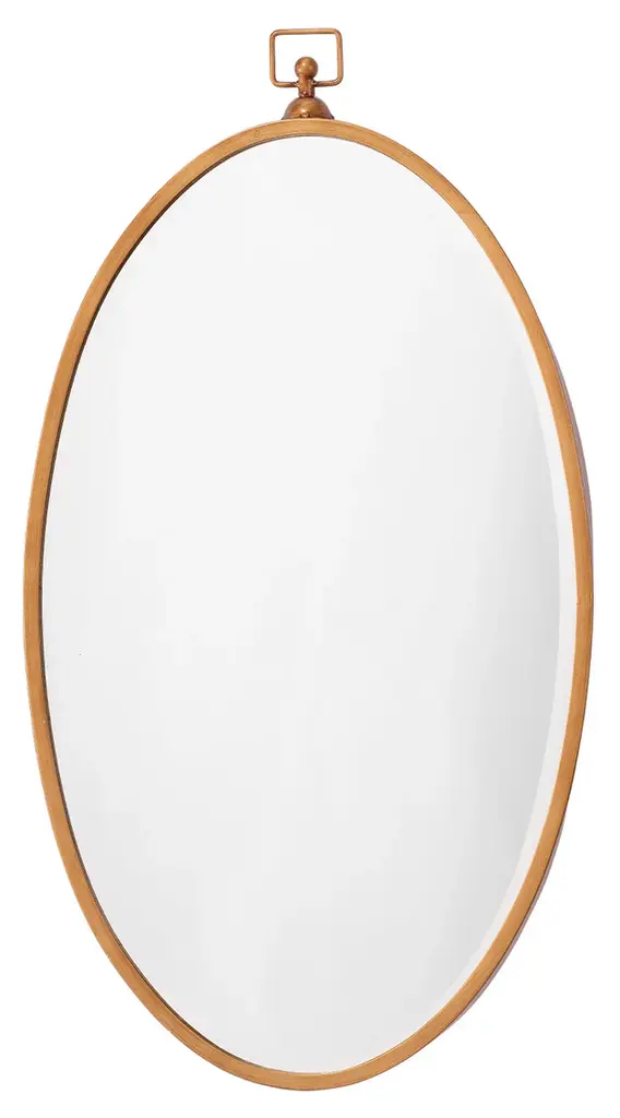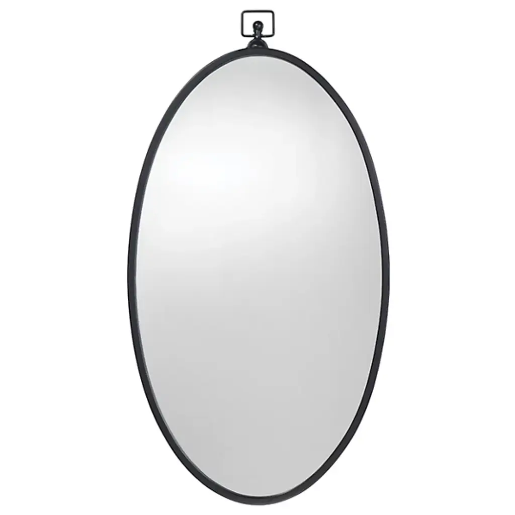 Give your rooms a spacious feel or frame your figure with the simple, yet elegant Wade Oval Mirror from Jamie Young. The purity of its geometric design makes it a clean and welcome addition to the home. The hanging mechanism is effortless, laying against your wall with a neat keyhole hanger. Crafted in sleek metal, the piece presents a sweeping oval frame that extends in a graphic silhouette. The beveled mirror displays a crystal-clear image from edge to edge.