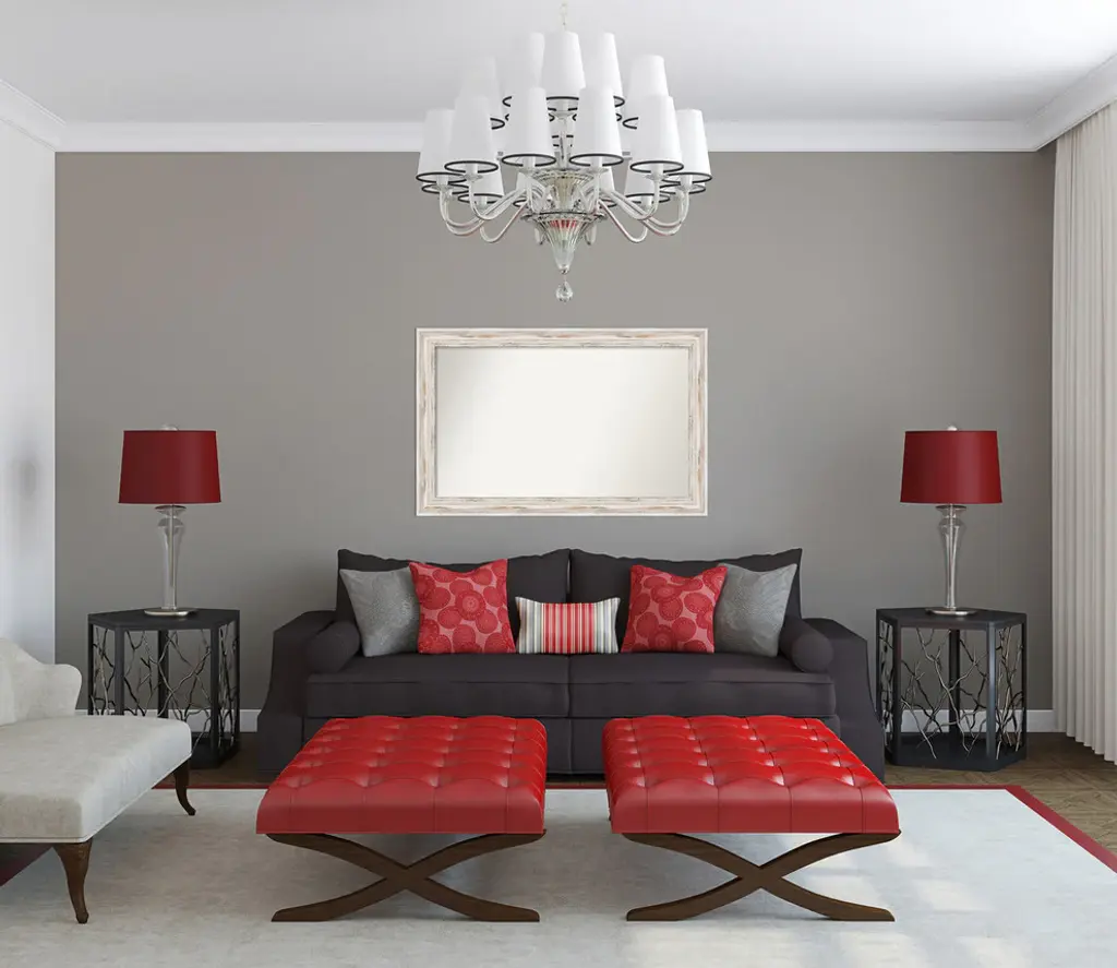 Give your home or office the finishing touch with this custom wood Non-Beveled Wall Mirror framed with the Alexandria White Wash frame. Individually made using traditional custom framing techniques, it has the quality you would expect from your local frame shop. It holds its value with premium finishing that can be appreciated up close.Features: • MIRROR DETAILS: This mirror features premium glass for a clear, undistorted image and has a non-beveled surface to maximize the viewing area. The overall size of this custom wall mirror measures 45 x 29 inches, including the frame. Its reflective area measures 40 x 24 inches.• FRAME DETAILS: The Alexandria White Wash Frame is a wide, whitewashed frame with outer edge accents. The creamy white finish has tan distressing and weathered patches. The frame is 3 in. wide and stands 2 in. off the wall.• PROTECTIVE BACKING: This wall mirror is finished with a solid surface backing to ensure stability and prevent moisture and dust buildup.• HASSLE-FREE HANGING: All mirrors have durable hanging hardware attached to the back to hang vertically or horizontally, along with hanging hooks and nails.• ASSEMBLED IN THE USA: Each piece is assembled to order in Madison, WI USA.• FOR HOME OR COMMERCIAL USE: Because of our attention to detail and focus on artistry, architects, interior designers, and homeowners alike choose this mirror to create beautiful living spaces.