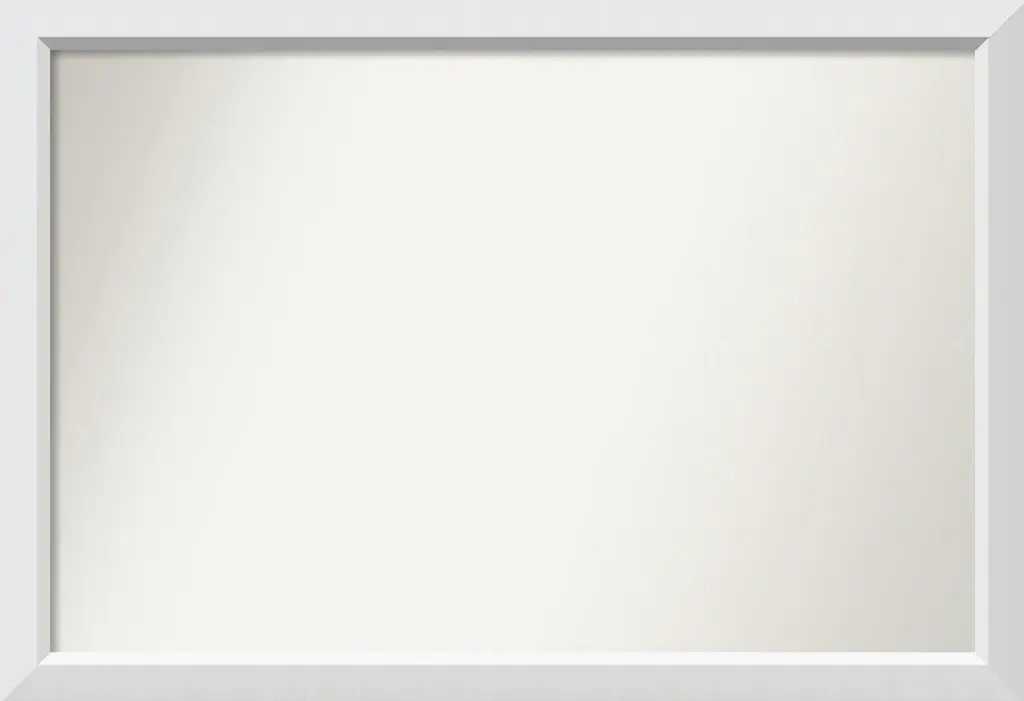 Give your home or office the finishing touch with this custom wood Non-Beveled Wall Mirror framed with the Blanco White frame. Individually made using traditional custom framing techniques, it has the quality you would expect from your local frame shop. It holds its value with premium finishing that can be appreciated up close.Features: • MIRROR DETAILS: This mirror features premium glass for a clear, undistorted image and has a non-beveled surface to maximize the viewing area. The overall size of this custom wall mirror measures 41.5 x 28.5 inches, including the frame. Its reflective area measures 38 x 25 inches.• FRAME DETAILS: The Blanco White Frame is a geometric white frame with a flat face and an angled inner edge with a smooth satin finish. The frame is 2 in. wide and stands 1.25 in. off the wall.• PROTECTIVE BACKING: This wall mirror is finished with a solid surface backing to ensure stability and prevent moisture and dust buildup.• HASSLE-FREE HANGING: All mirrors have durable hanging hardware attached to the back to hang vertically or horizontally, along with hanging hooks and nails.• ASSEMBLED IN THE USA: Each piece is assembled to order in Madison, WI USA.• FOR HOME OR COMMERCIAL USE: Because of our attention to detail and focus on artistry, architects, interior designers, and homeowners alike choose this mirror to create beautiful living spaces.