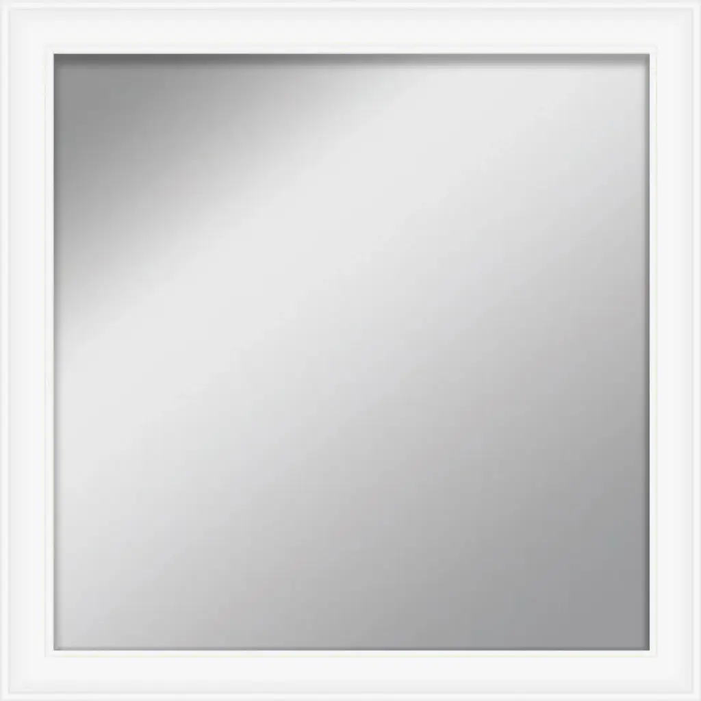 Give your home or office the finishing touch with this custom wood Non-Beveled Wall Mirror framed with the Blanco White frame. Individually made using traditional custom framing techniques, it has the quality you would expect from your local frame shop. It holds its value with premium finishing that can be appreciated up close.Features: • MIRROR DETAILS: This mirror features premium glass for a clear, undistorted image and has a non-beveled surface to maximize the viewing area. The overall size of this custom wall mirror measures 31.5 x 24.5 inches, including the frame. Its reflective area measures 28 x 21 inches.• FRAME DETAILS: The Blanco White Frame is a geometric white frame with a flat face and an angled inner edge with a smooth satin finish. The frame is 2 in. wide and stands 1.25 in. off the wall.• PROTECTIVE BACKING: This wall mirror is finished with a solid surface backing to ensure stability and prevent moisture and dust buildup.• HASSLE-FREE HANGING: All mirrors have durable hanging hardware attached to the back to hang vertically or horizontally, along with hanging hooks and nails.• ASSEMBLED IN THE USA: Each piece is assembled to order in Madison, WI USA.• FOR HOME OR COMMERCIAL USE: Because of our attention to detail and focus on artistry, architects, interior designers, and homeowners alike choose this mirror to create beautiful living spaces.