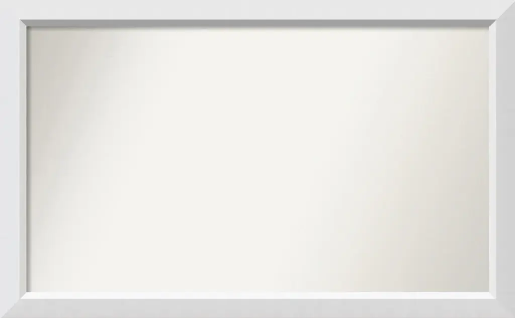 Give your home or office the finishing touch with this custom wood Non-Beveled Wall Mirror framed with the Blanco White frame. Individually made using traditional custom framing techniques, it has the quality you would expect from your local frame shop. It holds its value with premium finishing that can be appreciated up close.Features: • MIRROR DETAILS: This mirror features premium glass for a clear, undistorted image and has a non-beveled surface to maximize the viewing area. The overall size of this custom wall mirror measures 39.5 x 24.5 inches, including the frame. Its reflective area measures 36 x 21 inches.• FRAME DETAILS: The Blanco White Frame is a geometric white frame with a flat face and an angled inner edge with a smooth satin finish. The frame is 2 in. wide and stands 1.25 in. off the wall.• PROTECTIVE BACKING: This wall mirror is finished with a solid surface backing to ensure stability and prevent moisture and dust buildup.• HASSLE-FREE HANGING: All mirrors have durable hanging hardware attached to the back to hang vertically or horizontally, along with hanging hooks and nails.• ASSEMBLED IN THE USA: Each piece is assembled to order in Madison, WI USA.• FOR HOME OR COMMERCIAL USE: Because of our attention to detail and focus on artistry, architects, interior designers, and homeowners alike choose this mirror to create beautiful living spaces.
