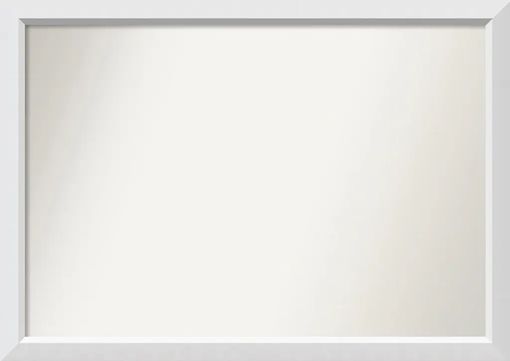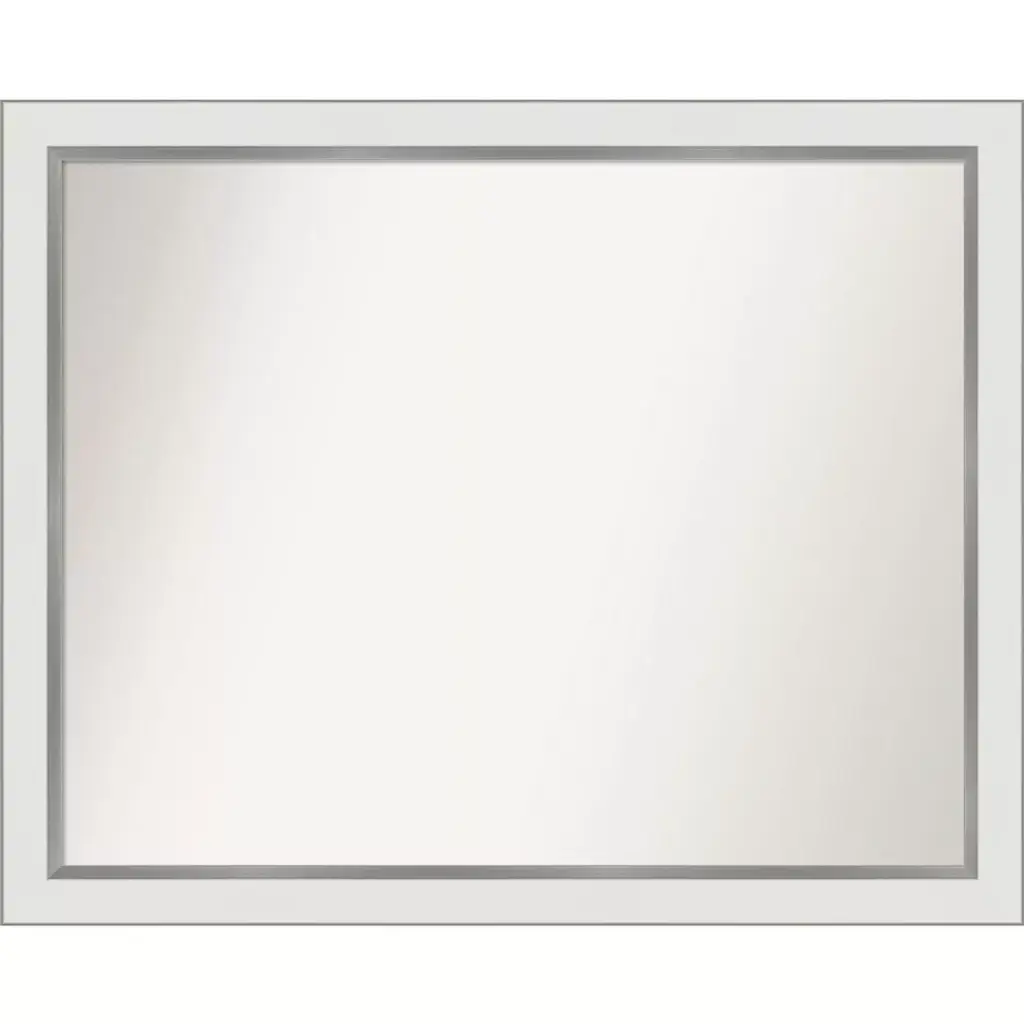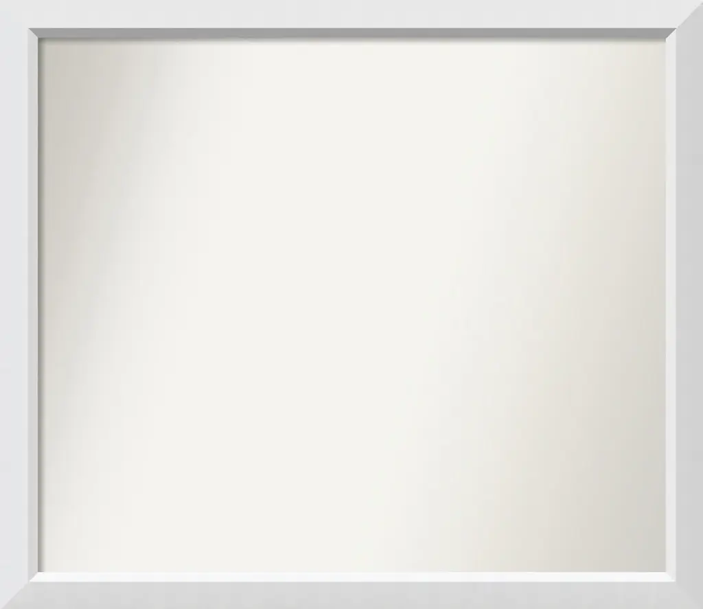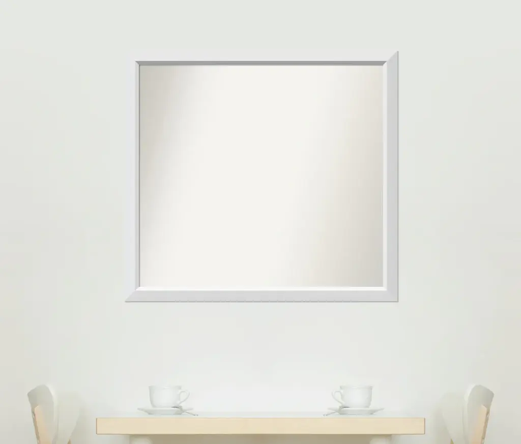 Give your home or office the finishing touch with this custom wood Non-Beveled Wall Mirror framed with the Blanco White frame. Individually made using traditional custom framing techniques, it has the quality you would expect from your local frame shop. It holds its value with premium finishing that can be appreciated up close.Features: • MIRROR DETAILS: This mirror features premium glass for a clear, undistorted image and has a non-beveled surface to maximize the viewing area. The overall size of this custom wall mirror measures 37.5 x 34.5 inches, including the frame. Its reflective area measures 34 x 31 inches.• FRAME DETAILS: The Blanco White Frame is a geometric white frame with a flat face and an angled inner edge with a smooth satin finish. The frame is 2 in. wide and stands 1.25 in. off the wall.• PROTECTIVE BACKING: This wall mirror is finished with a solid surface backing to ensure stability and prevent moisture and dust buildup.• HASSLE-FREE HANGING: All mirrors have durable hanging hardware attached to the back to hang vertically or horizontally, along with hanging hooks and nails.• ASSEMBLED IN THE USA: Each piece is assembled to order in Madison, WI USA.• FOR HOME OR COMMERCIAL USE: Because of our attention to detail and focus on artistry, architects, interior designers, and homeowners alike choose this mirror to create beautiful living spaces.