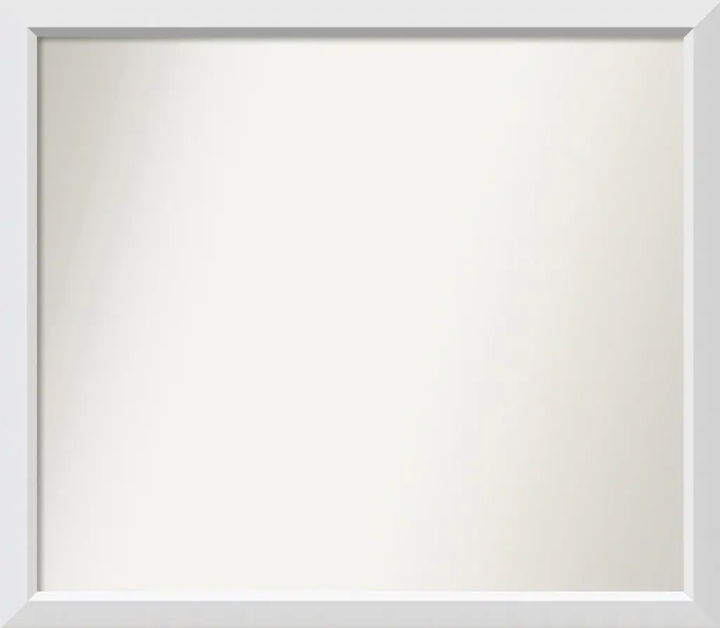 Give your home or office the finishing touch with this custom wood Non-Beveled Wall Mirror framed with the Blanco White frame. Individually made using traditional custom framing techniques, it has the quality you would expect from your local frame shop. It holds its value with premium finishing that can be appreciated up close.Features: • MIRROR DETAILS: This mirror features premium glass for a clear, undistorted image and has a non-beveled surface to maximize the viewing area. The overall size of this custom wall mirror measures 39.5 x 34.5 inches, including the frame. Its reflective area measures 36 x 31 inches.• FRAME DETAILS: The Blanco White Frame is a geometric white frame with a flat face and an angled inner edge with a smooth satin finish. The frame is 2 in. wide and stands 1.25 in. off the wall.• PROTECTIVE BACKING: This wall mirror is finished with a solid surface backing to ensure stability and prevent moisture and dust buildup.• HASSLE-FREE HANGING: All mirrors have durable hanging hardware attached to the back to hang vertically or horizontally, along with hanging hooks and nails.• ASSEMBLED IN THE USA: Each piece is assembled to order in Madison, WI USA.• FOR HOME OR COMMERCIAL USE: Because of our attention to detail and focus on artistry, architects, interior designers, and homeowners alike choose this mirror to create beautiful living spaces.