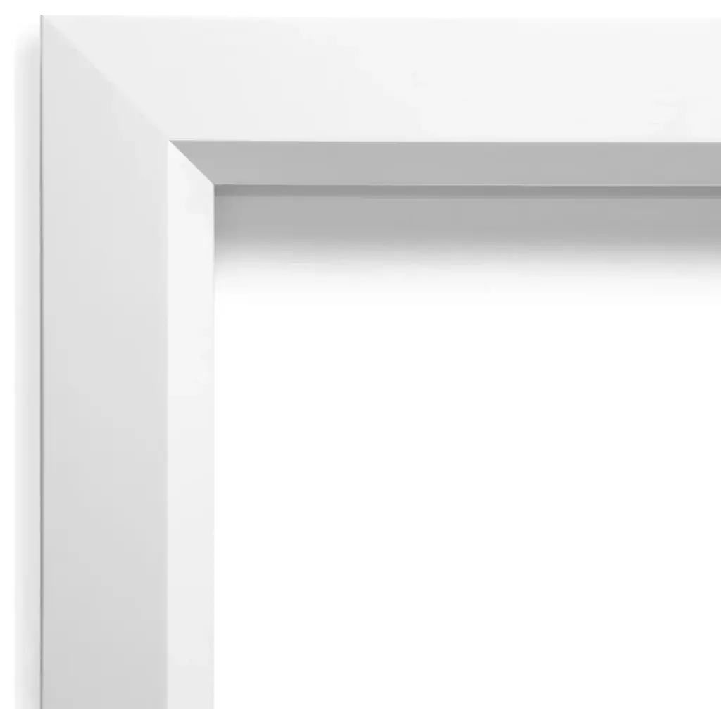 Give your home or office the finishing touch with this custom wood Non-Beveled Wall Mirror framed with the Blanco White frame. Individually made using traditional custom framing techniques, it has the quality you would expect from your local frame shop. It holds its value with premium finishing that can be appreciated up close.Features: • MIRROR DETAILS: This mirror features premium glass for a clear, undistorted image and has a non-beveled surface to maximize the viewing area. The overall size of this custom wall mirror measures 39.5 x 31.5 inches, including the frame. Its reflective area measures 36 x 28 inches.• FRAME DETAILS: The Blanco White Frame is a geometric white frame with a flat face and an angled inner edge with a smooth satin finish. The frame is 2 in. wide and stands 1.25 in. off the wall.• PROTECTIVE BACKING: This wall mirror is finished with a solid surface backing to ensure stability and prevent moisture and dust buildup.• HASSLE-FREE HANGING: All mirrors have durable hanging hardware attached to the back to hang vertically or horizontally, along with hanging hooks and nails.• ASSEMBLED IN THE USA: Each piece is assembled to order in Madison, WI USA.• FOR HOME OR COMMERCIAL USE: Because of our attention to detail and focus on artistry, architects, interior designers, and homeowners alike choose this mirror to create beautiful living spaces.