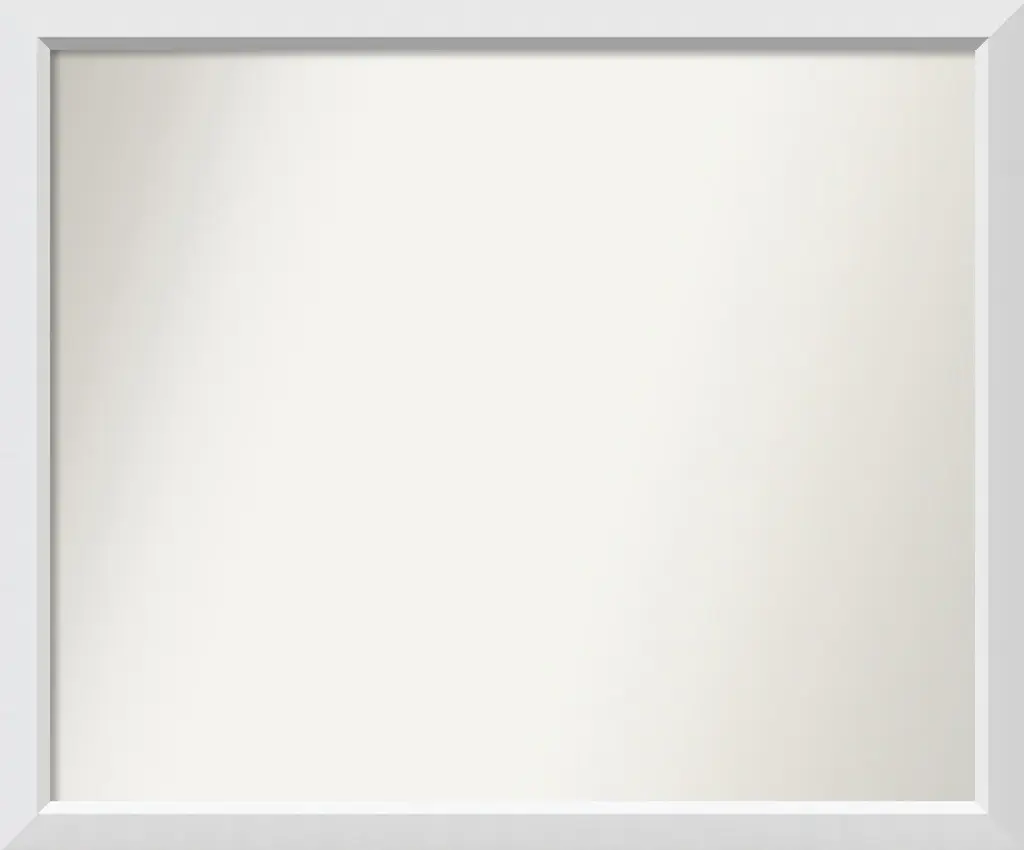 Give your home or office the finishing touch with this custom wood Non-Beveled Wall Mirror framed with the Blanco White frame. Individually made using traditional custom framing techniques, it has the quality you would expect from your local frame shop. It holds its value with premium finishing that can be appreciated up close.Features: • MIRROR DETAILS: This mirror features premium glass for a clear, undistorted image and has a non-beveled surface to maximize the viewing area. The overall size of this custom wall mirror measures 41.5 x 34.5 inches, including the frame. Its reflective area measures 38 x 31 inches.• FRAME DETAILS: The Blanco White Frame is a geometric white frame with a flat face and an angled inner edge with a smooth satin finish. The frame is 2 in. wide and stands 1.25 in. off the wall.• PROTECTIVE BACKING: This wall mirror is finished with a solid surface backing to ensure stability and prevent moisture and dust buildup.• HASSLE-FREE HANGING: All mirrors have durable hanging hardware attached to the back to hang vertically or horizontally, along with hanging hooks and nails.• ASSEMBLED IN THE USA: Each piece is assembled to order in Madison, WI USA.• FOR HOME OR COMMERCIAL USE: Because of our attention to detail and focus on artistry, architects, interior designers, and homeowners alike choose this mirror to create beautiful living spaces.