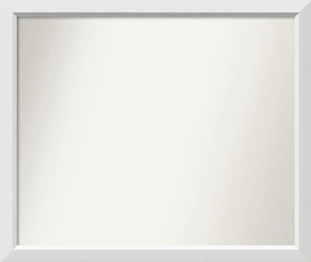 Give your home or office the finishing touch with this custom wood Non-Beveled Wall Mirror framed with the Blanco White frame. Individually made using traditional custom framing techniques, it has the quality you would expect from your local frame shop. It holds its value with premium finishing that can be appreciated up close.Features: • MIRROR DETAILS: This mirror features premium glass for a clear, undistorted image and has a non-beveled surface to maximize the viewing area. The overall size of this custom wall mirror measures 37.5 x 31.5 inches, including the frame. Its reflective area measures 34 x 28 inches.• FRAME DETAILS: The Blanco White Frame is a geometric white frame with a flat face and an angled inner edge with a smooth satin finish. The frame is 2 in. wide and stands 1.25 in. off the wall.• PROTECTIVE BACKING: This wall mirror is finished with a solid surface backing to ensure stability and prevent moisture and dust buildup.• HASSLE-FREE HANGING: All mirrors have durable hanging hardware attached to the back to hang vertically or horizontally, along with hanging hooks and nails.• ASSEMBLED IN THE USA: Each piece is assembled to order in Madison, WI USA.• FOR HOME OR COMMERCIAL USE: Because of our attention to detail and focus on artistry, architects, interior designers, and homeowners alike choose this mirror to create beautiful living spaces.