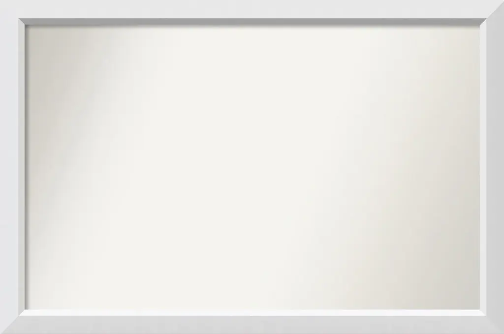 Give your home or office the finishing touch with this custom wood Non-Beveled Wall Mirror framed with the Blanco White frame. Individually made using traditional custom framing techniques, it has the quality you would expect from your local frame shop. It holds its value with premium finishing that can be appreciated up close.Features: • MIRROR DETAILS: This mirror features premium glass for a clear, undistorted image and has a non-beveled surface to maximize the viewing area. The overall size of this custom wall mirror measures 41.5 x 27.5 inches, including the frame. Its reflective area measures 38 x 24 inches.• FRAME DETAILS: The Blanco White Frame is a geometric white frame with a flat face and an angled inner edge with a smooth satin finish. The frame is 2 in. wide and stands 1.25 in. off the wall.• PROTECTIVE BACKING: This wall mirror is finished with a solid surface backing to ensure stability and prevent moisture and dust buildup.• HASSLE-FREE HANGING: All mirrors have durable hanging hardware attached to the back to hang vertically or horizontally, along with hanging hooks and nails.• ASSEMBLED IN THE USA: Each piece is assembled to order in Madison, WI USA.• FOR HOME OR COMMERCIAL USE: Because of our attention to detail and focus on artistry, architects, interior designers, and homeowners alike choose this mirror to create beautiful living spaces.