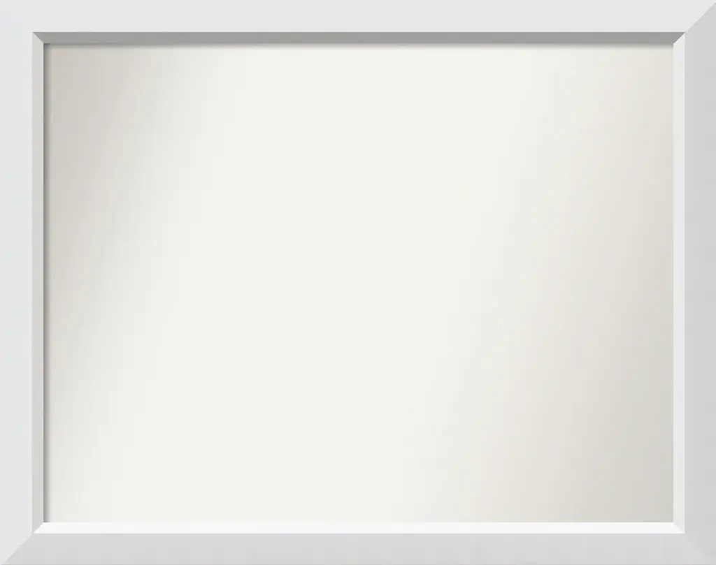 Give your home or office the finishing touch with this custom wood Non-Beveled Wall Mirror framed with the Blanco White frame. Individually made using traditional custom framing techniques, it has the quality you would expect from your local frame shop. It holds its value with premium finishing that can be appreciated up close.Features: • MIRROR DETAILS: This mirror features premium glass for a clear, undistorted image and has a non-beveled surface to maximize the viewing area. The overall size of this custom wall mirror measures 33.5 x 26.5 inches, including the frame. Its reflective area measures 30 x 23 inches.• FRAME DETAILS: The Blanco White Frame is a geometric white frame with a flat face and an angled inner edge with a smooth satin finish. The frame is 2 in. wide and stands 1.25 in. off the wall.• PROTECTIVE BACKING: This wall mirror is finished with a solid surface backing to ensure stability and prevent moisture and dust buildup.• HASSLE-FREE HANGING: All mirrors have durable hanging hardware attached to the back to hang vertically or horizontally, along with hanging hooks and nails.• ASSEMBLED IN THE USA: Each piece is assembled to order in Madison, WI USA.• FOR HOME OR COMMERCIAL USE: Because of our attention to detail and focus on artistry, architects, interior designers, and homeowners alike choose this mirror to create beautiful living spaces.
