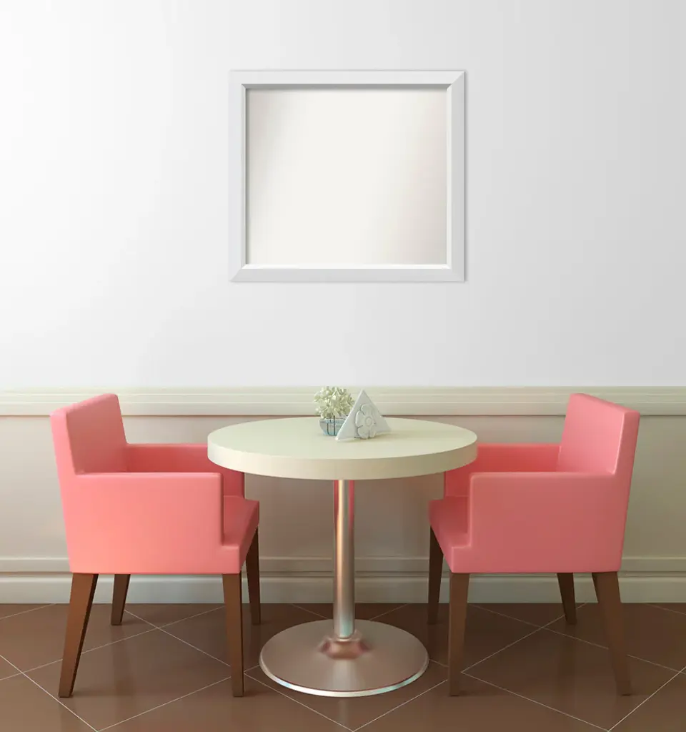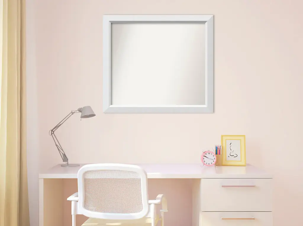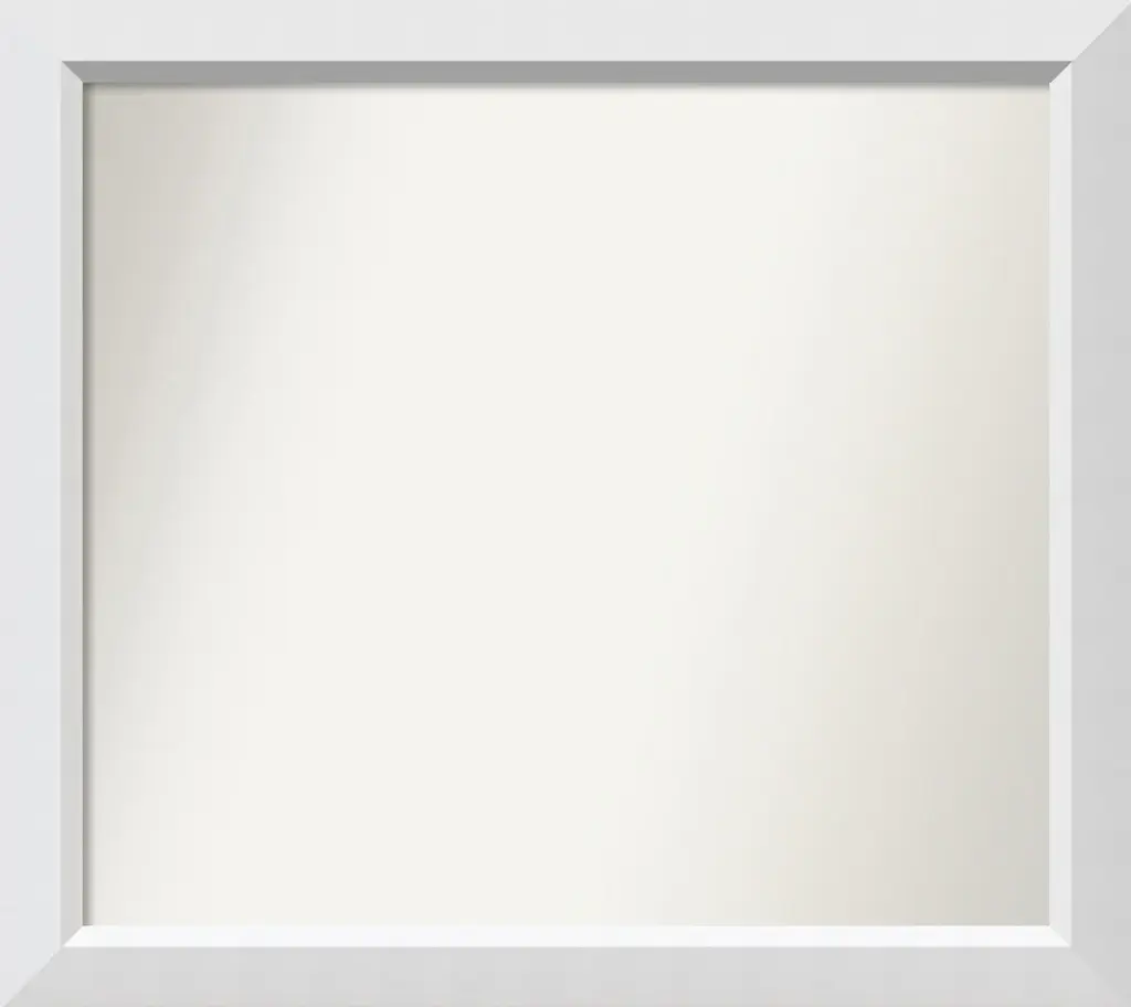 Give your home or office the finishing touch with this custom wood Non-Beveled Wall Mirror framed with the Blanco White frame. Individually made using traditional custom framing techniques, it has the quality you would expect from your local frame shop. It holds its value with premium finishing that can be appreciated up close.Features: • MIRROR DETAILS: This mirror features premium glass for a clear, undistorted image and has a non-beveled surface to maximize the viewing area. The overall size of this custom wall mirror measures 27.5 x 24.5 inches, including the frame. Its reflective area measures 24 x 21 inches.• FRAME DETAILS: The Blanco White Frame is a geometric white frame with a flat face and an angled inner edge with a smooth satin finish. The frame is 2 in. wide and stands 1.25 in. off the wall.• PROTECTIVE BACKING: This wall mirror is finished with a solid surface backing to ensure stability and prevent moisture and dust buildup.• HASSLE-FREE HANGING: All mirrors have durable hanging hardware attached to the back to hang vertically or horizontally, along with hanging hooks and nails.• ASSEMBLED IN THE USA: Each piece is assembled to order in Madison, WI USA.• FOR HOME OR COMMERCIAL USE: Because of our attention to detail and focus on artistry, architects, interior designers, and homeowners alike choose this mirror to create beautiful living spaces.