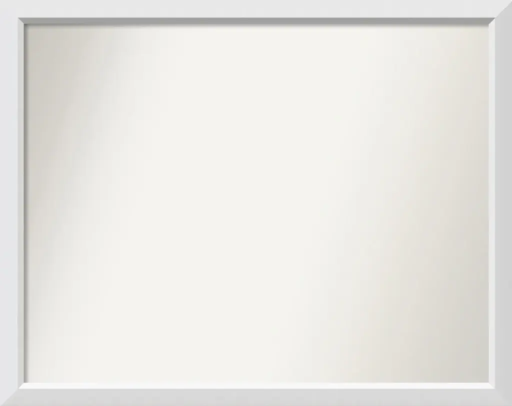 Give your home or office the finishing touch with this custom wood Non-Beveled Wall Mirror framed with the Blanco White frame. Individually made using traditional custom framing techniques, it has the quality you would expect from your local frame shop. It holds its value with premium finishing that can be appreciated up close.Features: • MIRROR DETAILS: This mirror features premium glass for a clear, undistorted image and has a non-beveled surface to maximize the viewing area. The overall size of this custom wall mirror measures 43.5 x 34.5 inches, including the frame. Its reflective area measures 40 x 31 inches.• FRAME DETAILS: The Blanco White Frame is a geometric white frame with a flat face and an angled inner edge with a smooth satin finish. The frame is 2 in. wide and stands 1.25 in. off the wall.• PROTECTIVE BACKING: This wall mirror is finished with a solid surface backing to ensure stability and prevent moisture and dust buildup.• HASSLE-FREE HANGING: All mirrors have durable hanging hardware attached to the back to hang vertically or horizontally, along with hanging hooks and nails.• ASSEMBLED IN THE USA: Each piece is assembled to order in Madison, WI USA.• FOR HOME OR COMMERCIAL USE: Because of our attention to detail and focus on artistry, architects, interior designers, and homeowners alike choose this mirror to create beautiful living spaces.