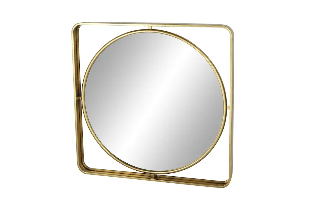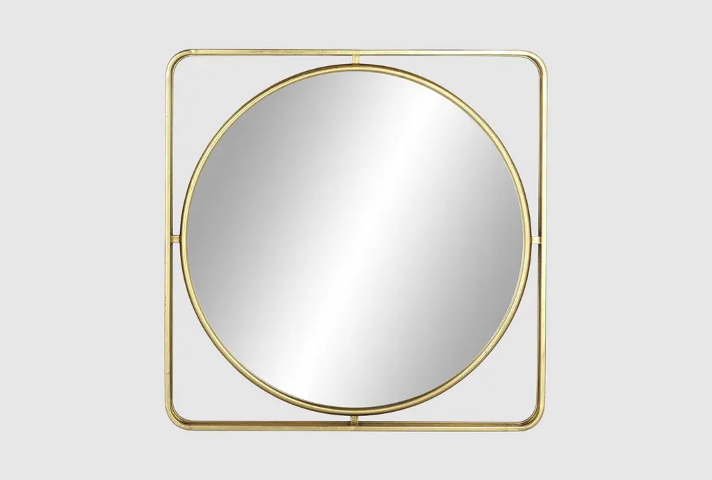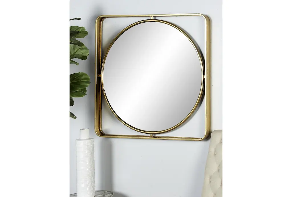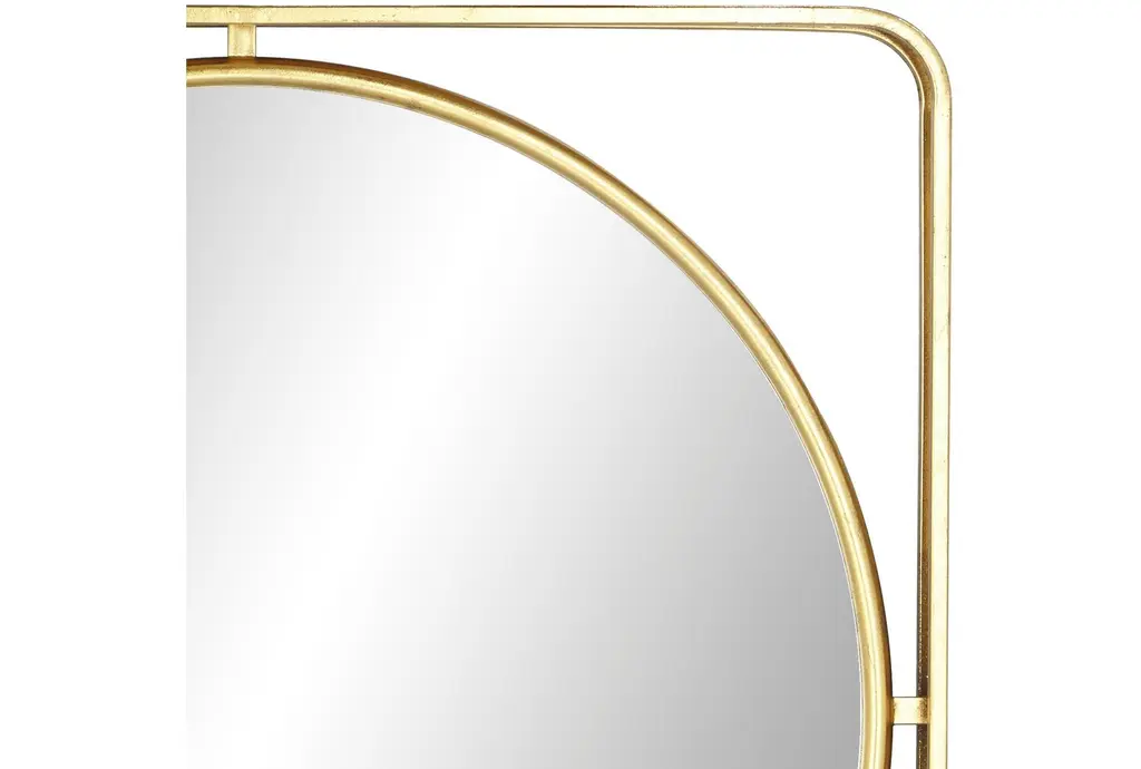 Use this mirror to brighten up your bedroom or living room.. This item ships in 1 carton. Can be hung vertically using the metal rings on the back; nails and screws not included. Suitable for indoor use only. This item ships fully assembled in one piece. This is a single gold colored entryway mirror. Contemporary style.