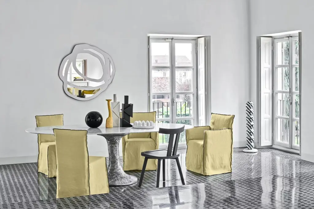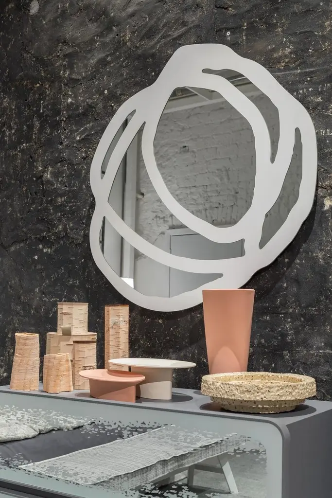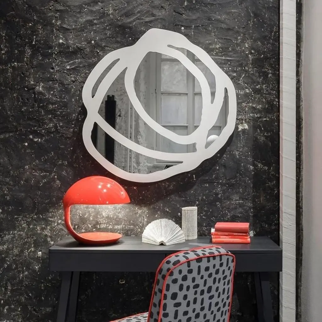 Brand: GervasoniDesign: Paola NavoneModel: Sweet 97 MirrorThe Sweet 97 Mirror by Gervasoni, designed by Paola Navone, is part of a family of wall mirrors available in two sizes. Sweet 97 features rounded and irregular edges, giving it a distinctive, expressive presence on any wall.The mirror surface is decorated with screen-printed black or white patterns, creating intersecting circles and irregular shapes in a playful overlay of lines, resulting in a strong decorative and artistic effect.Dimensions:Diameter: 150 cm (59.1 in)Details & Finishing:Wall mirror with rounded, irregular edgesScreen-printed motifs in black or whiteArtistic and decorative impactConcept:Sweet 97 combines functionality with visual expression, transforming any wall into a statement piece. The color can be chosen in black or white, and it is designed as a wall-mounted mirror, perfect for both residential and contract spaces.